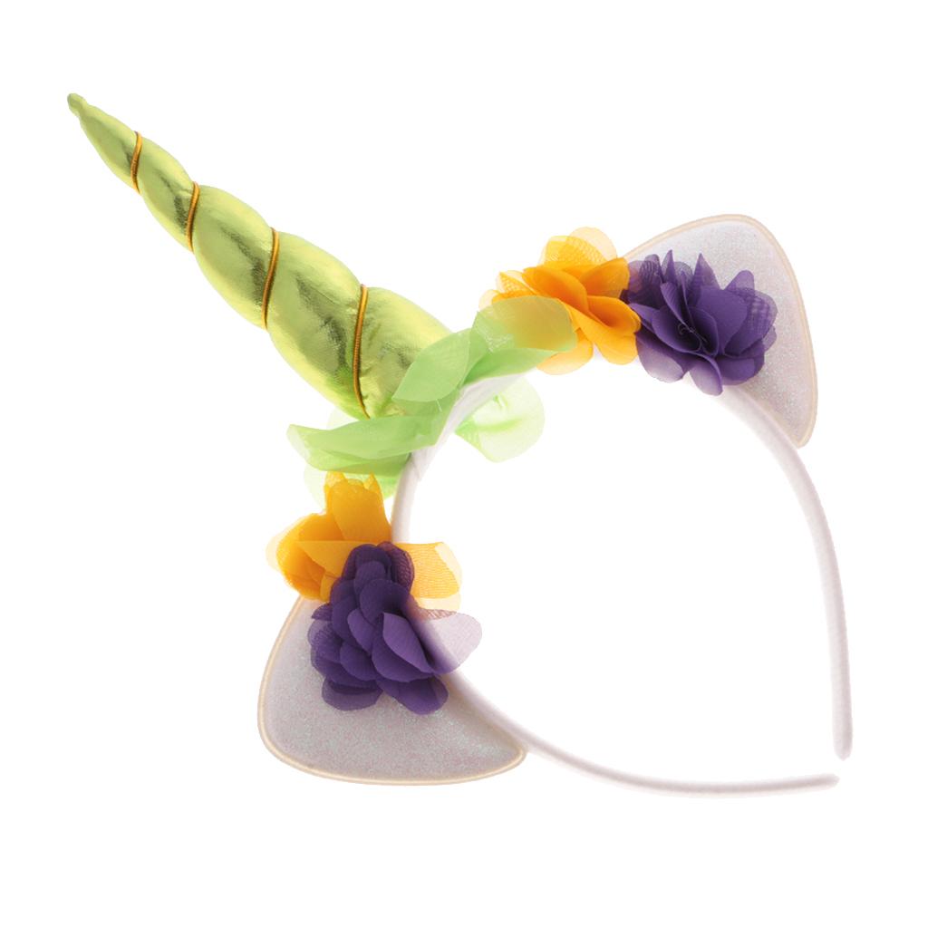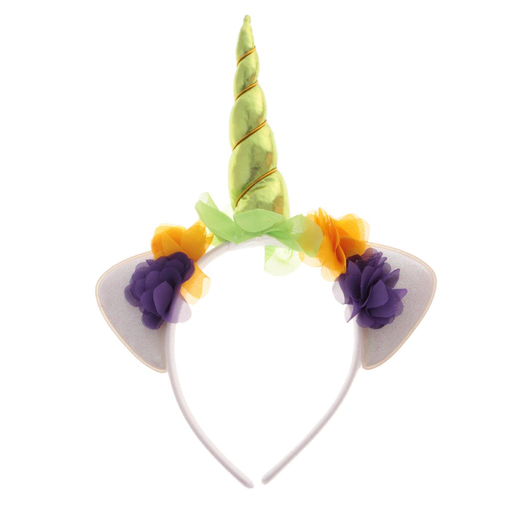Soft fabric wrapped band, golden unicorn horn / ears with tulle flower decoration