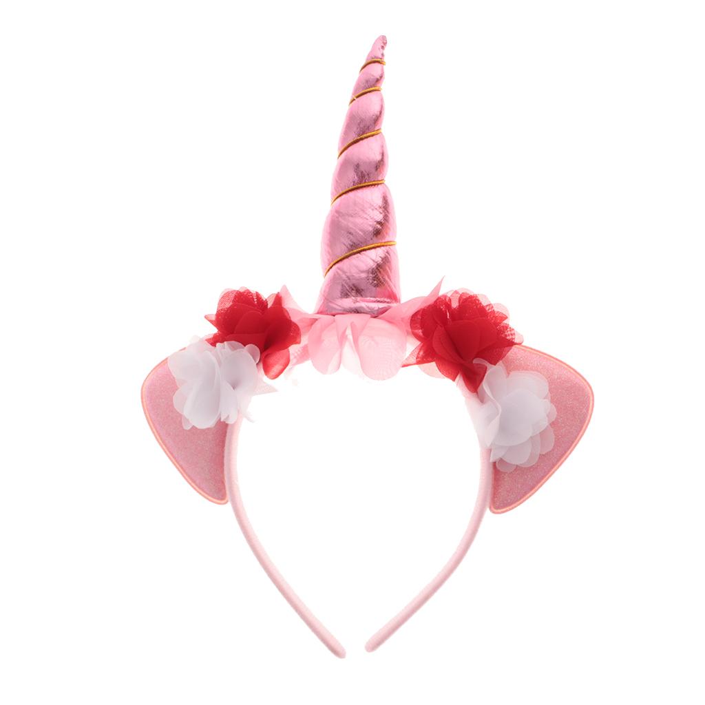 Soft fabric wrapped band, golden unicorn horn / ears with tulle flower decoration