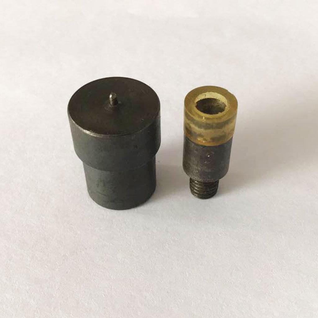 This die set has two parts: top die and bottom die, which are woking together with eyelet hand press punch machine tool.