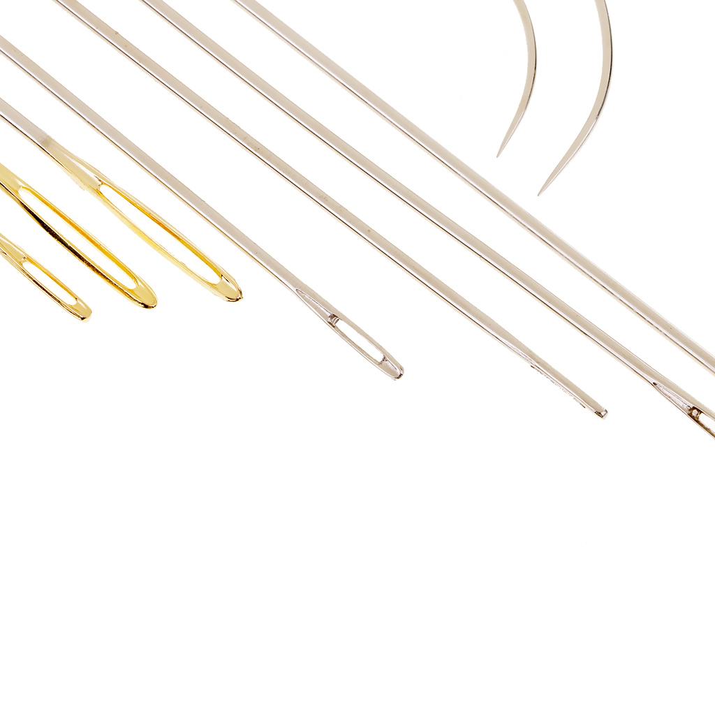 Assorted hand sewing needles come in a variety of sizes for different uses.
