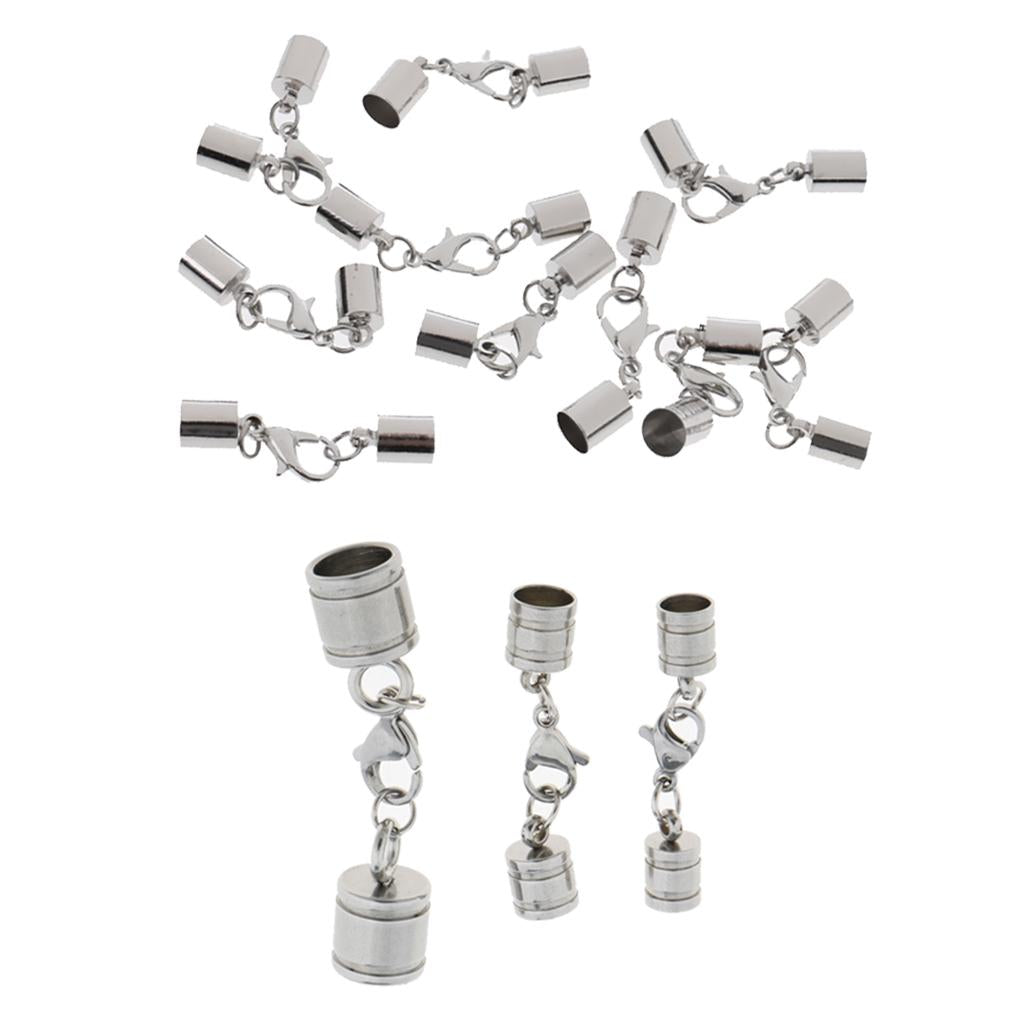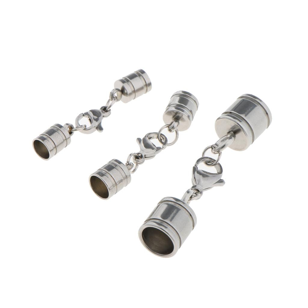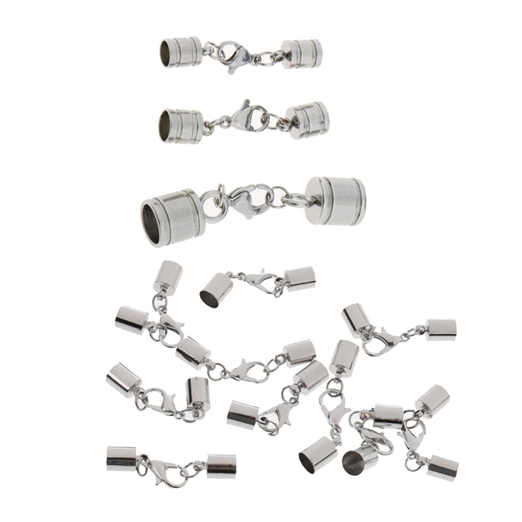 13 Pieces Silver Stainless Steel Leather Cord End Cap Bead Loop Barrel DIY Clasp