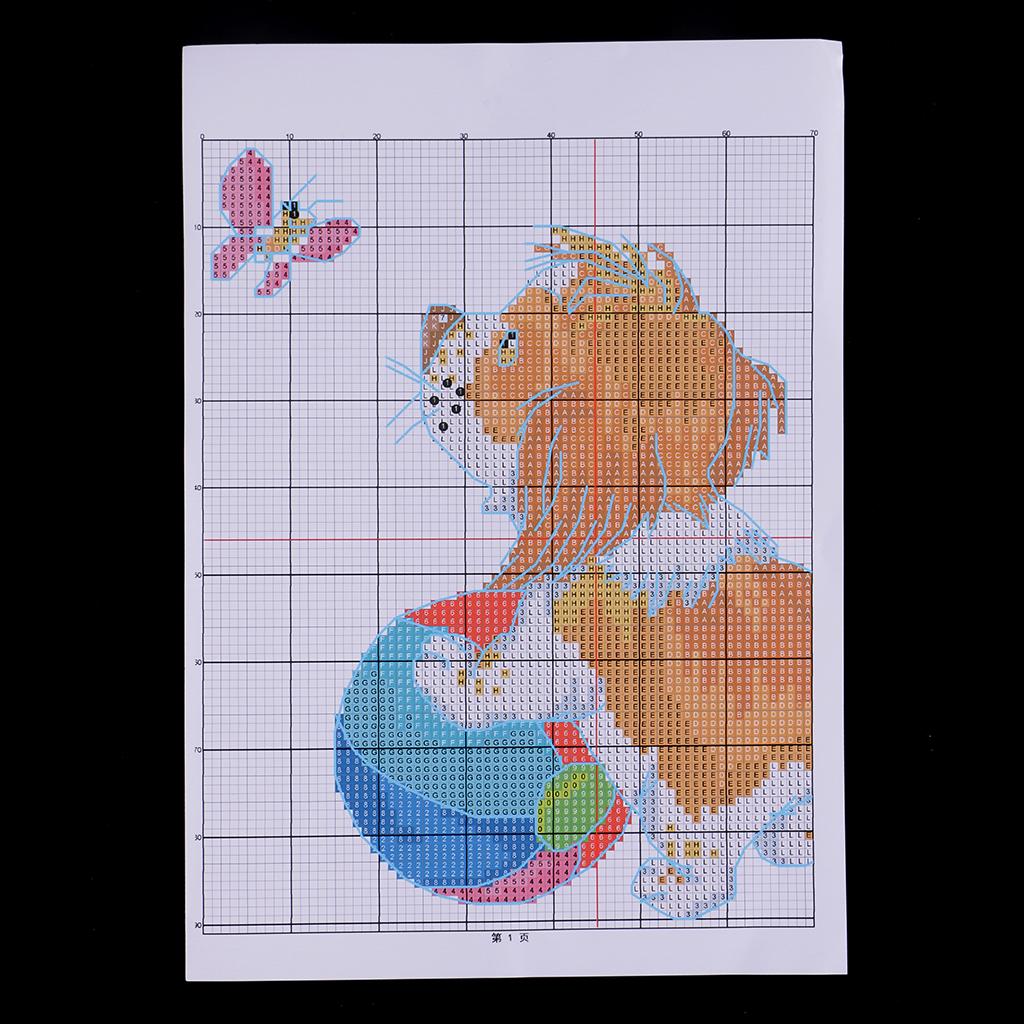 14CT 21x21cm A Dog Playing Ball Counted Cross Stitch Kit DIY Needlework for Beginners Kids Adults