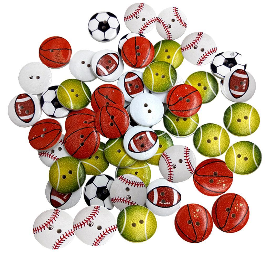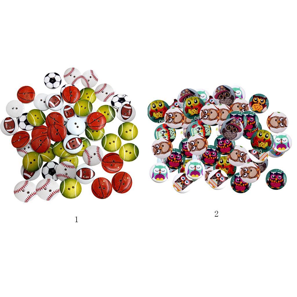 50 Pieces 20 mm 2-hole Cartoon Wooden Buttons Flatback Sewing Craft/Scrapbooking Mixed Color