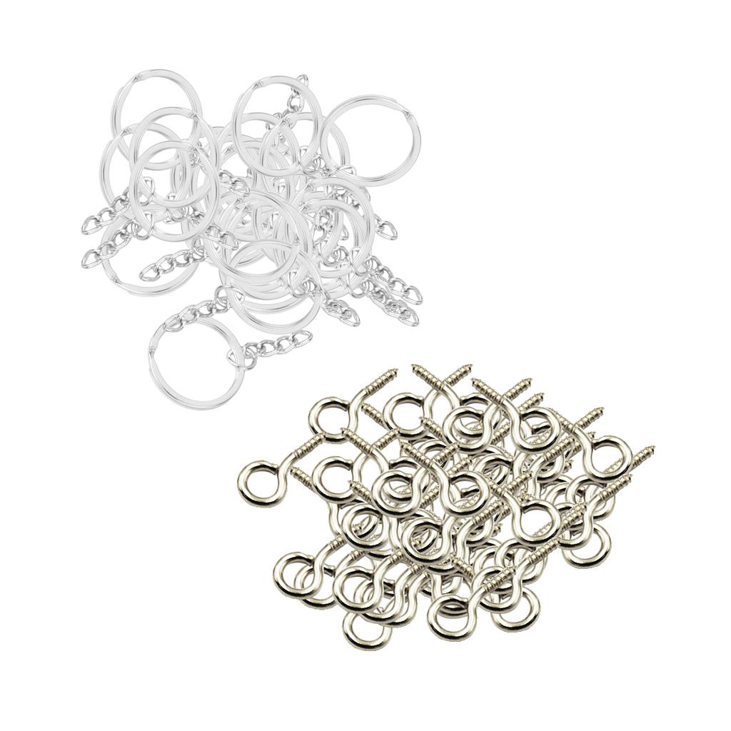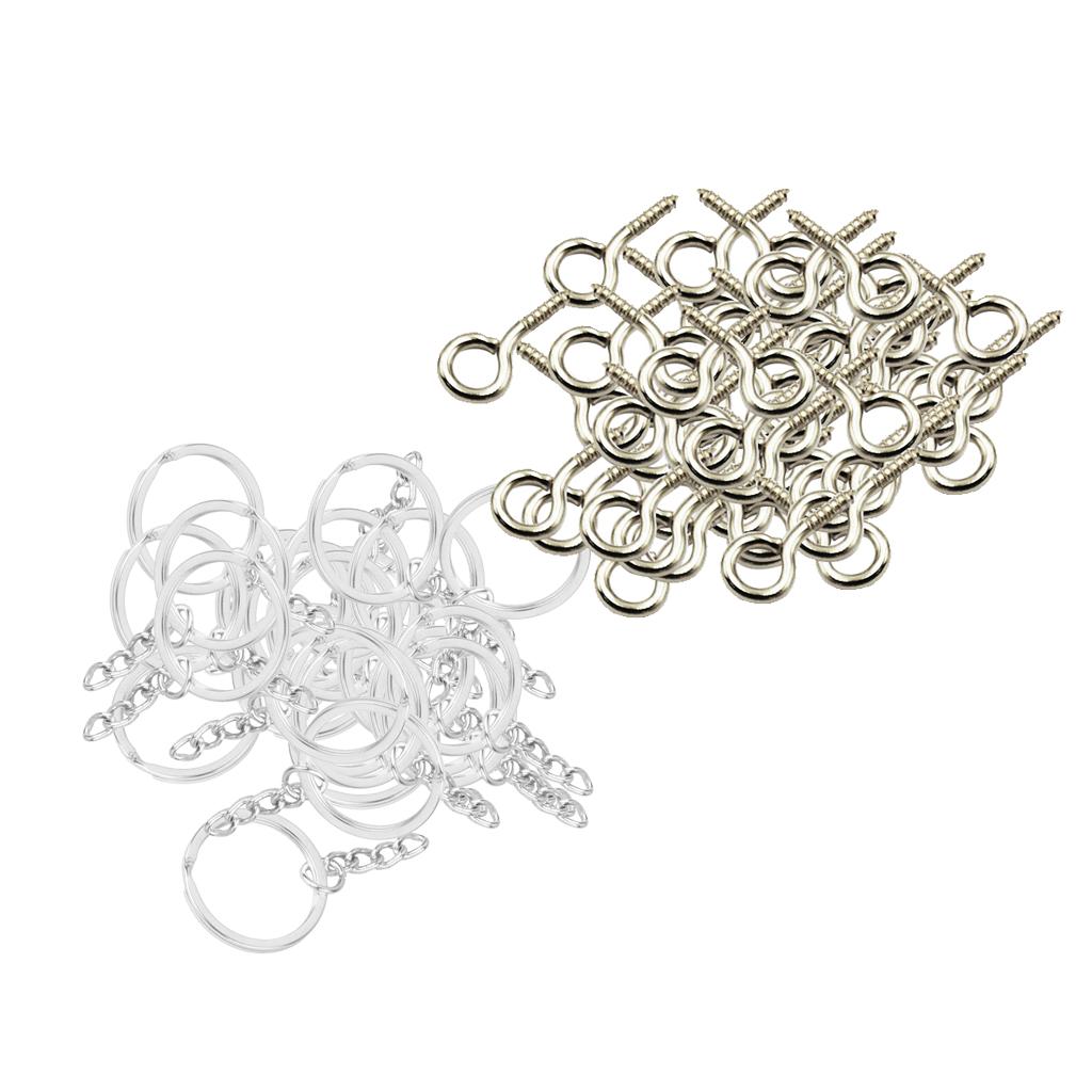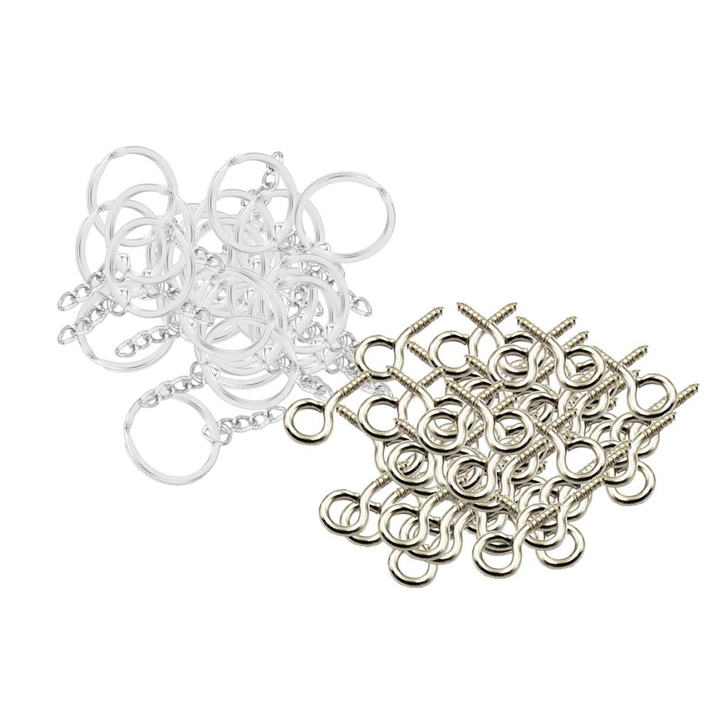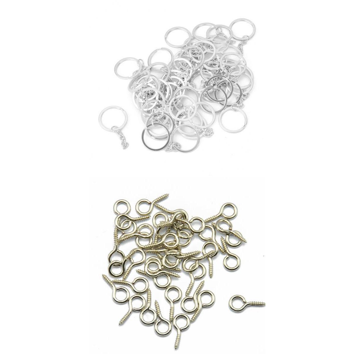 Lots of 50 Pieces silver plated eye pins with screw pegs And 50 Pieces Split Keyring with chain