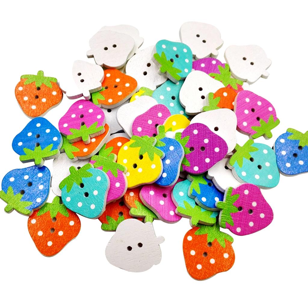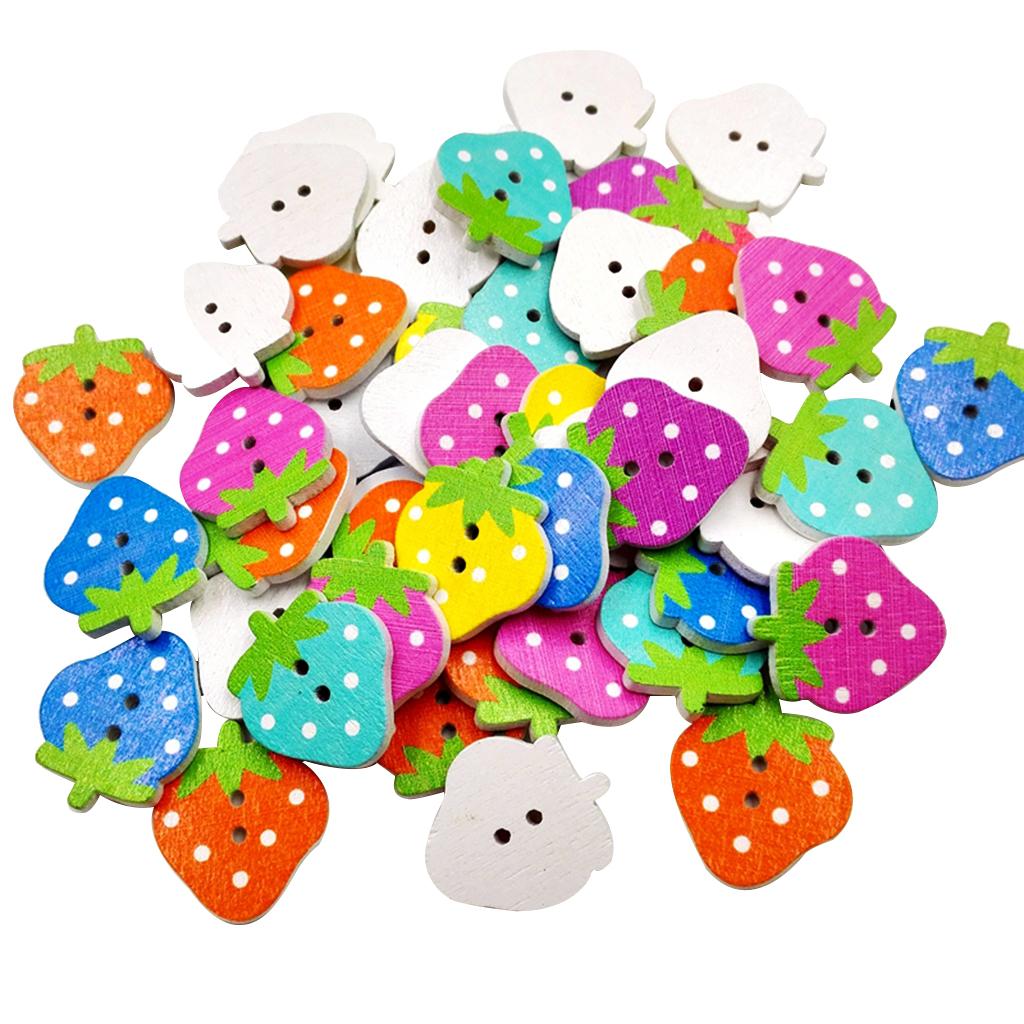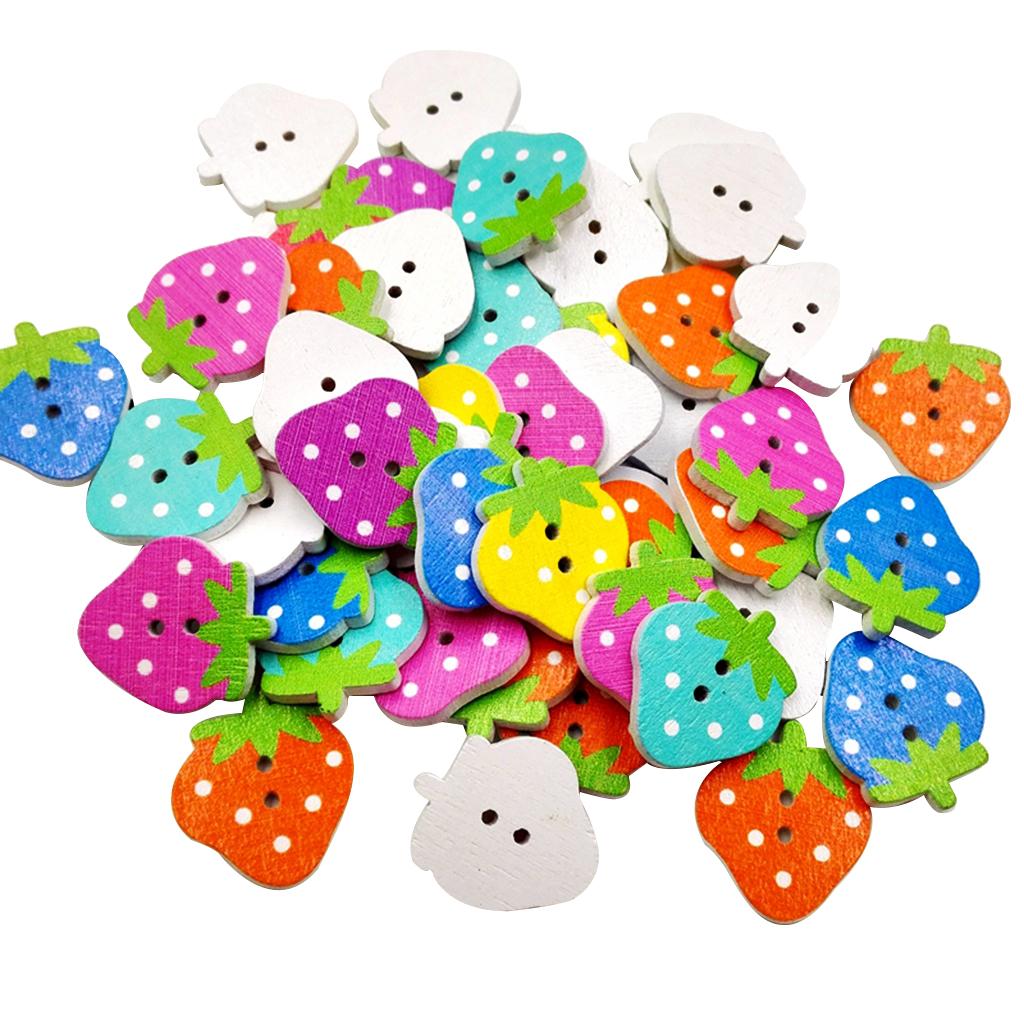 50 Pieces Strawberry Shape Wooden Buttons for Scrapbooking Emebllishments Sewing 25mm