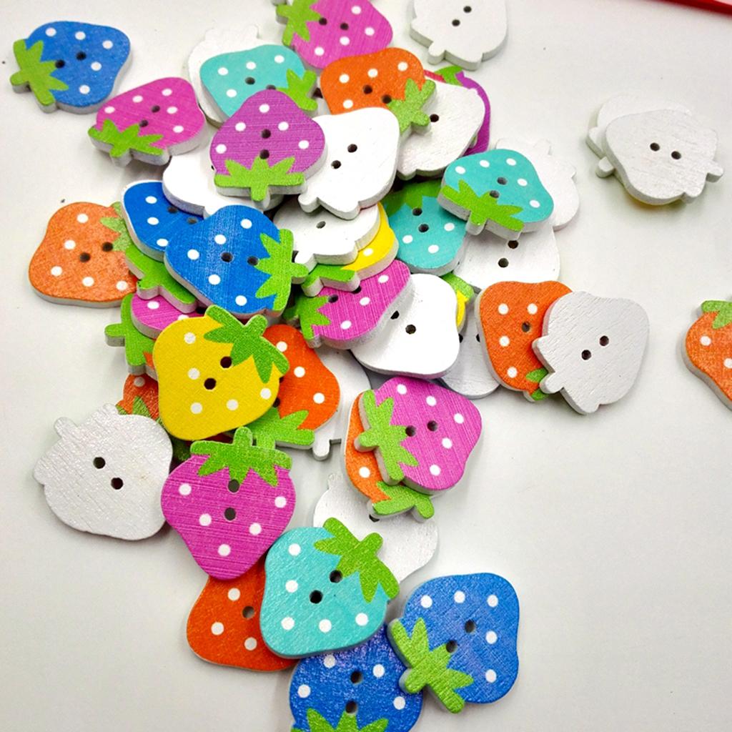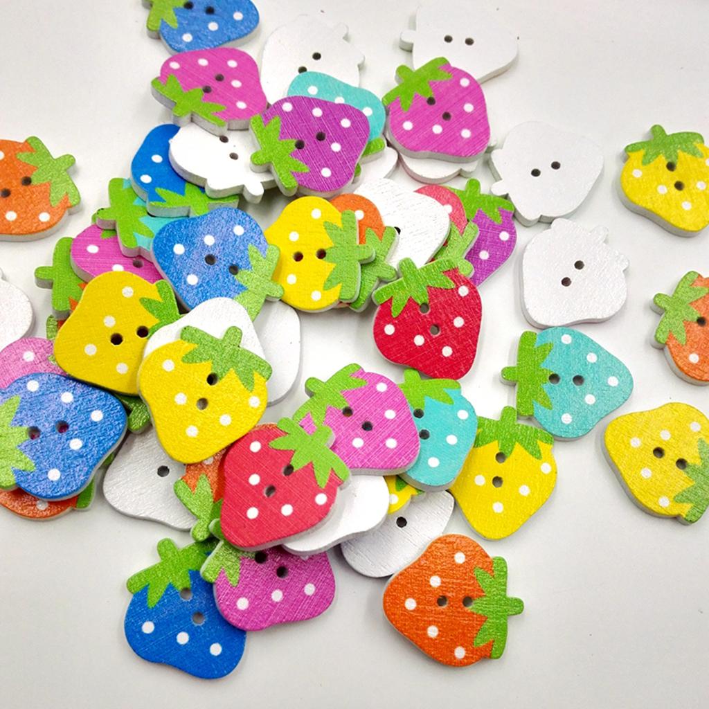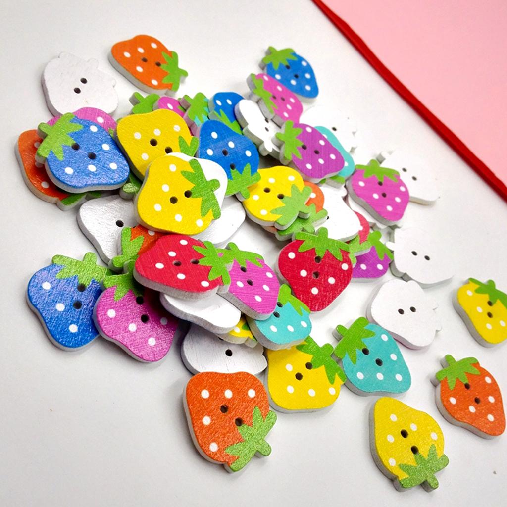 50 Pieces Strawberry Shape Wooden Buttons for Scrapbooking Emebllishments Sewing 25mm