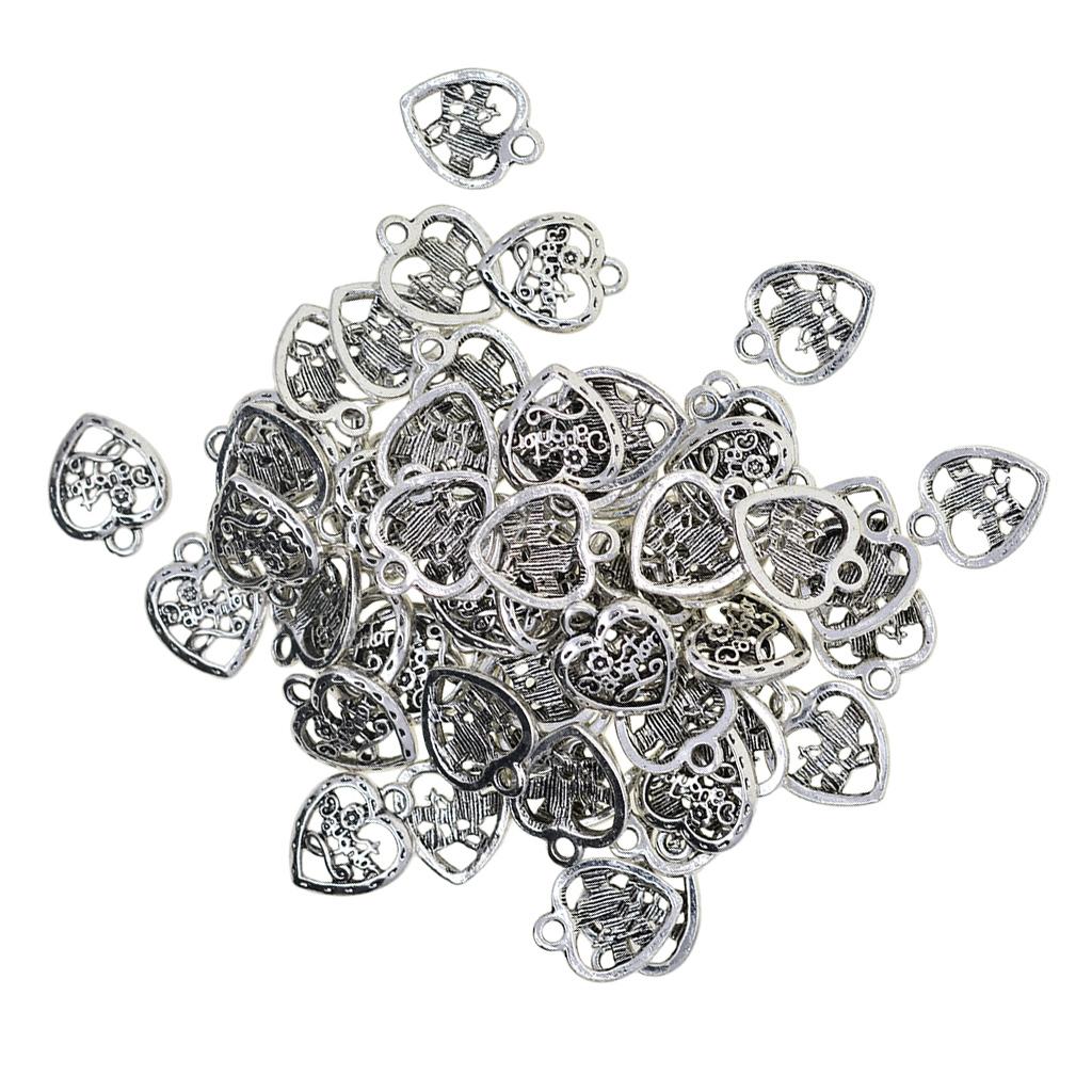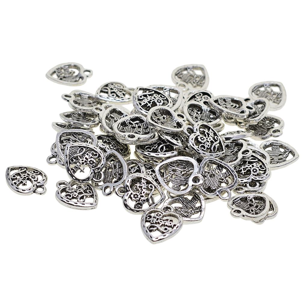 50 Pieces Heart Charm Pendants