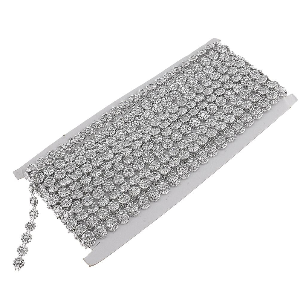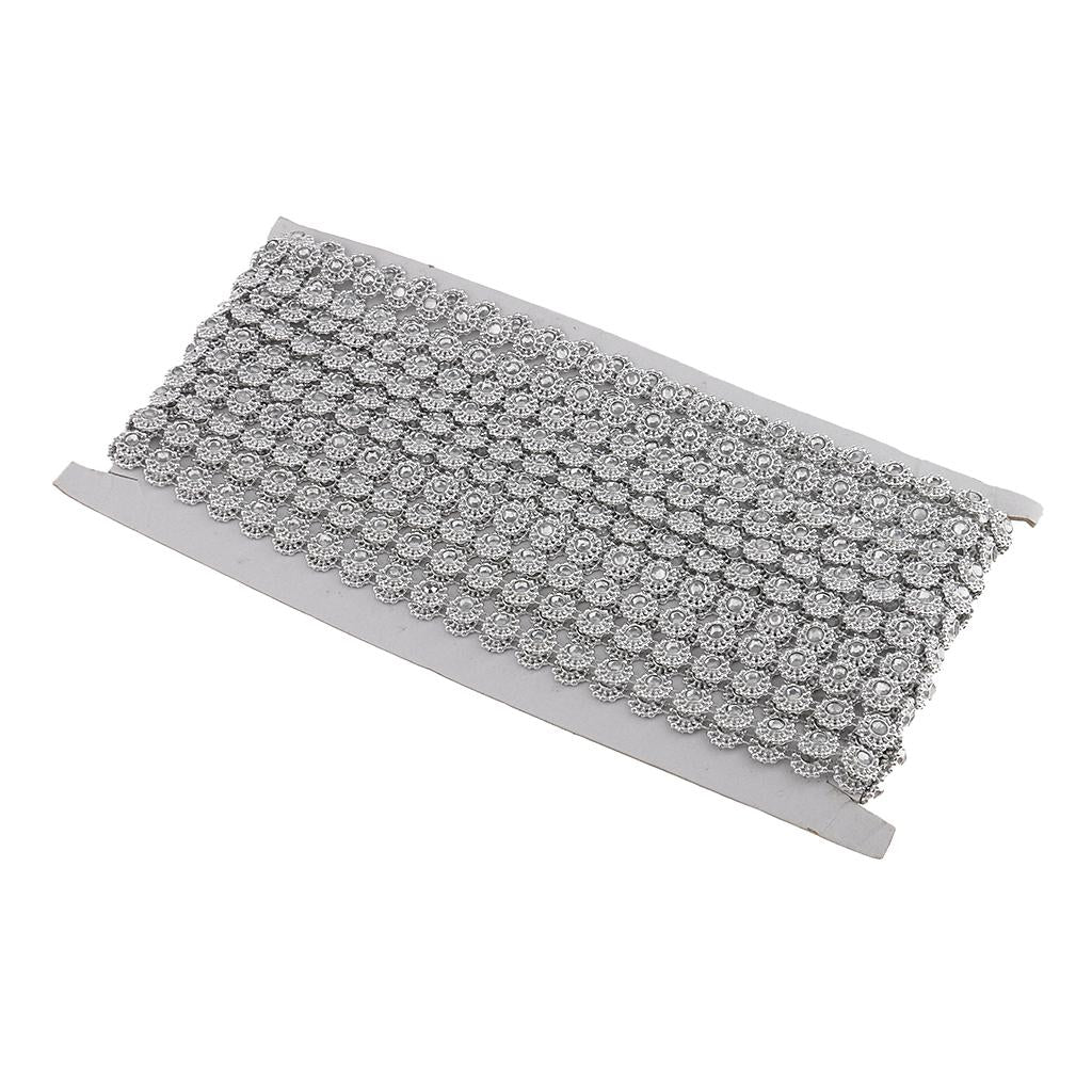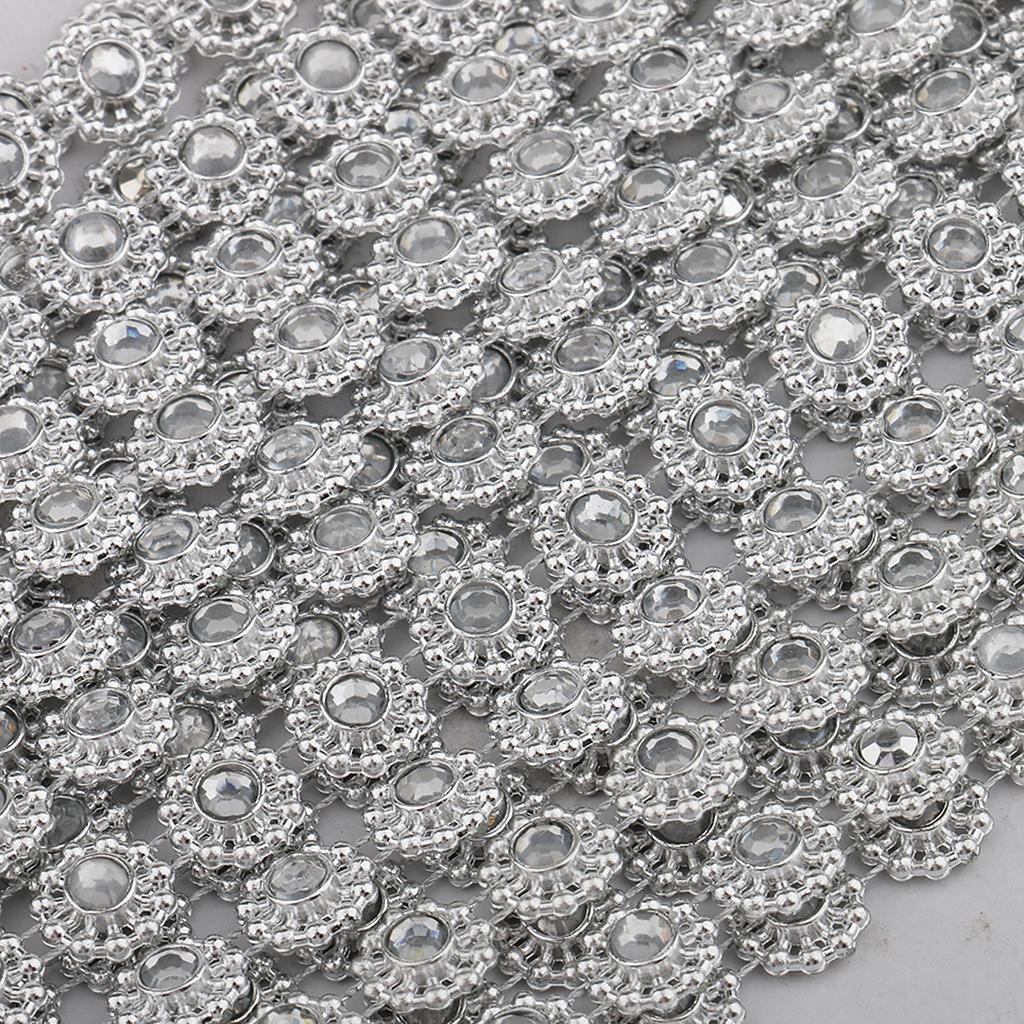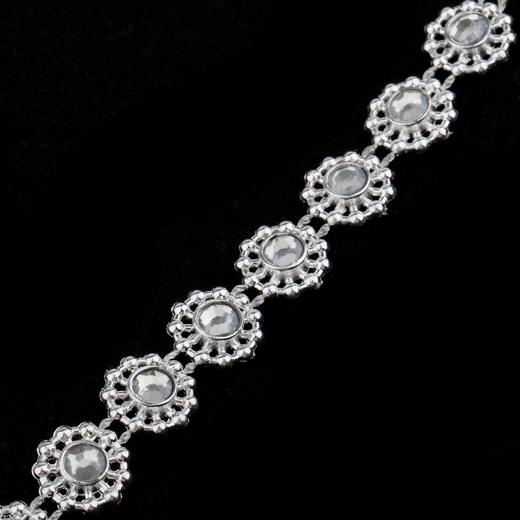 9.1 Meters Flower Shape Rhinestone Beaded Chain Ribbon Trim Embellishment for DIY Crafts Silver