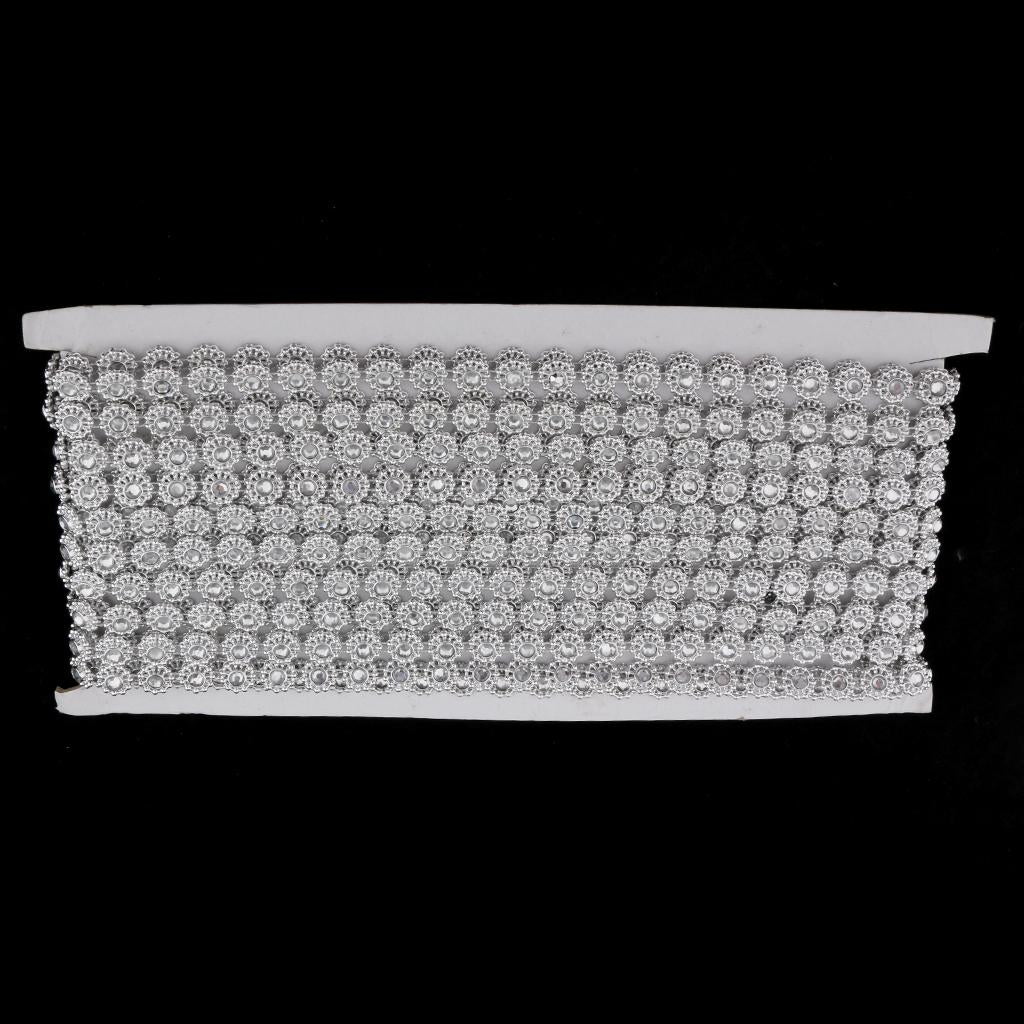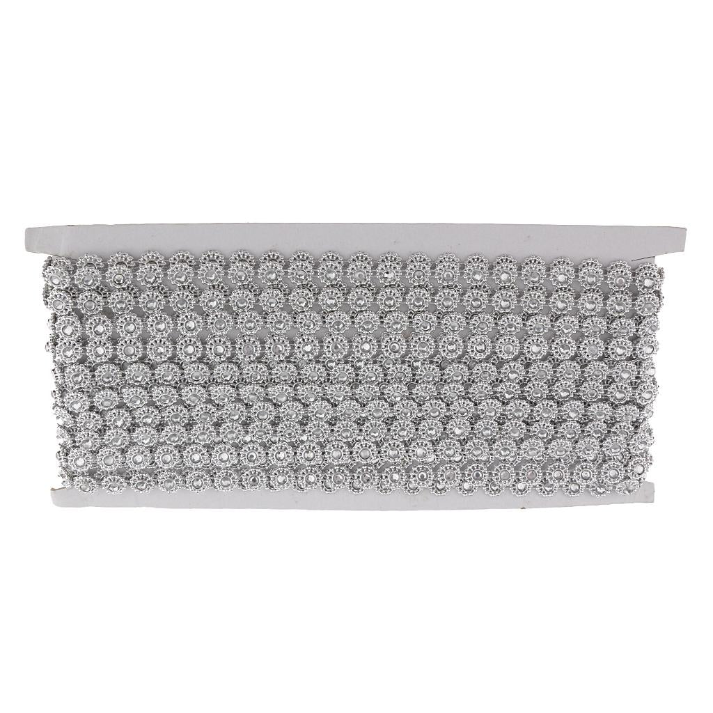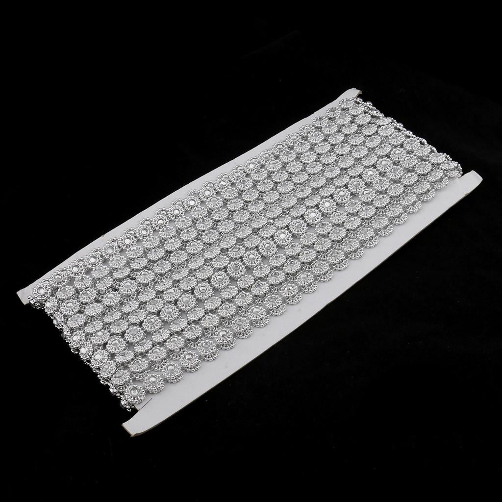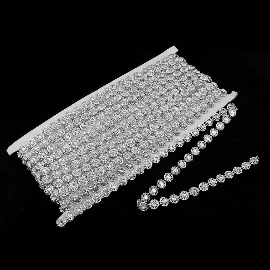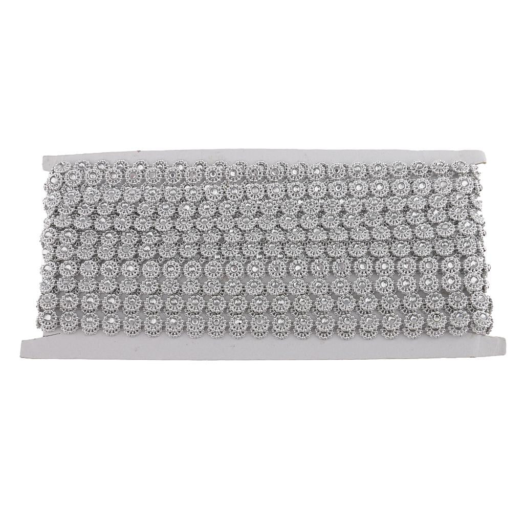 9.1 Meters Flower Shape Rhinestone Beaded Chain Ribbon Trim Embellishment for DIY Crafts Silver