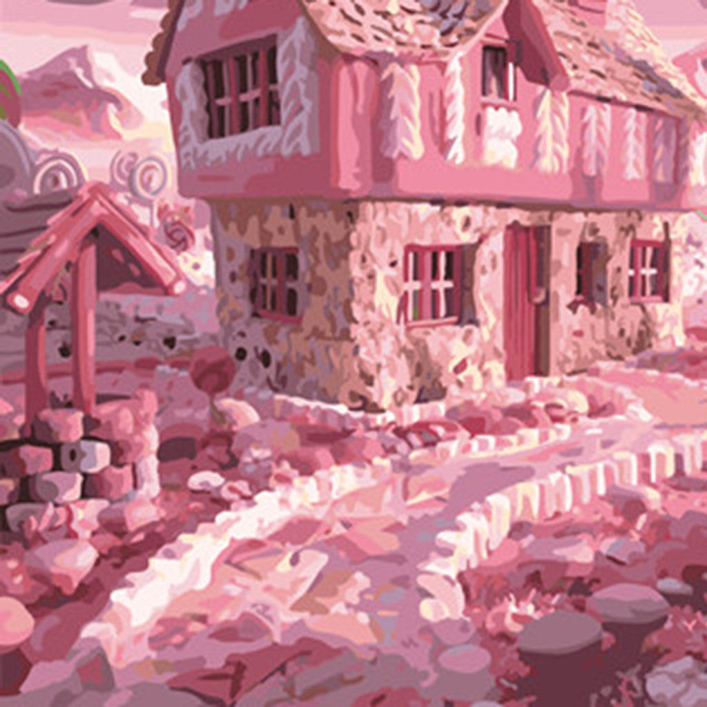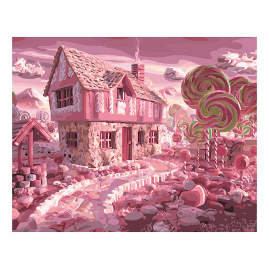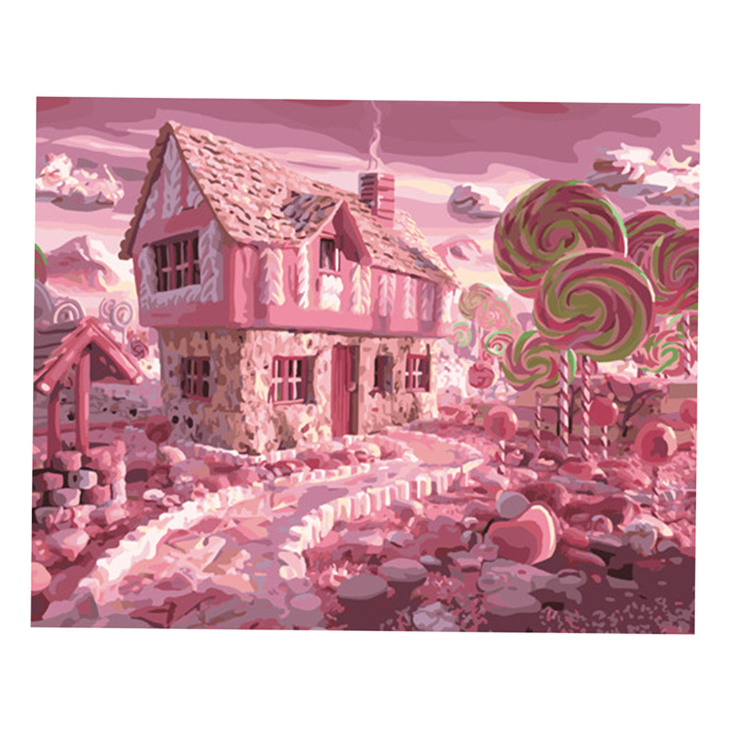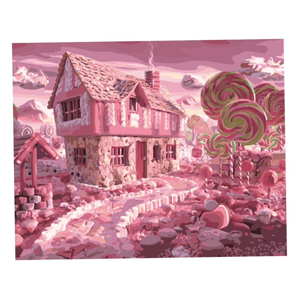 Frameless DIY Painting By Numbers Canvas Painting Art Picture Candy House