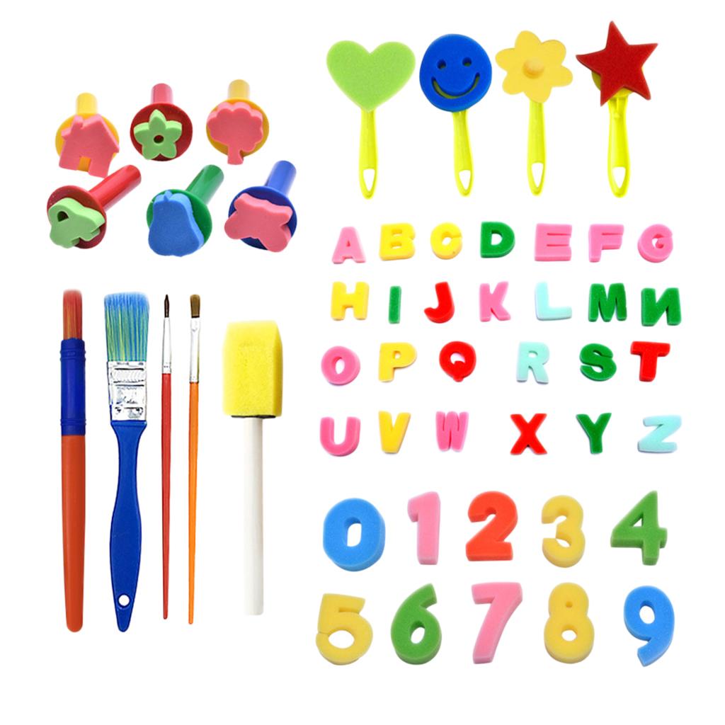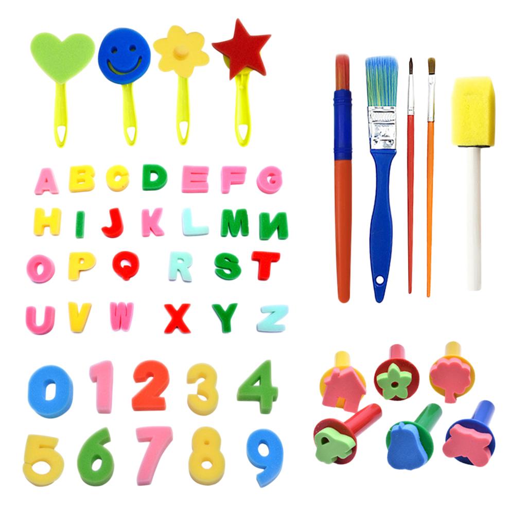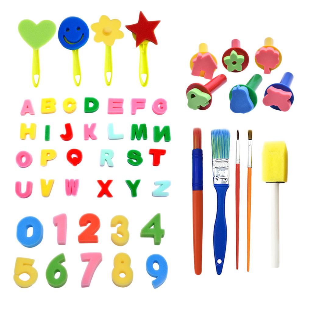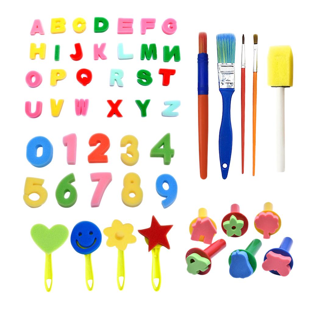 Set Iuncludes: 50 Pieces include---6x Roller sponge brushes, 5xSponge brushes, 2x Paint Brush, 2x Fine brush, 36x number letter sponge stamper .