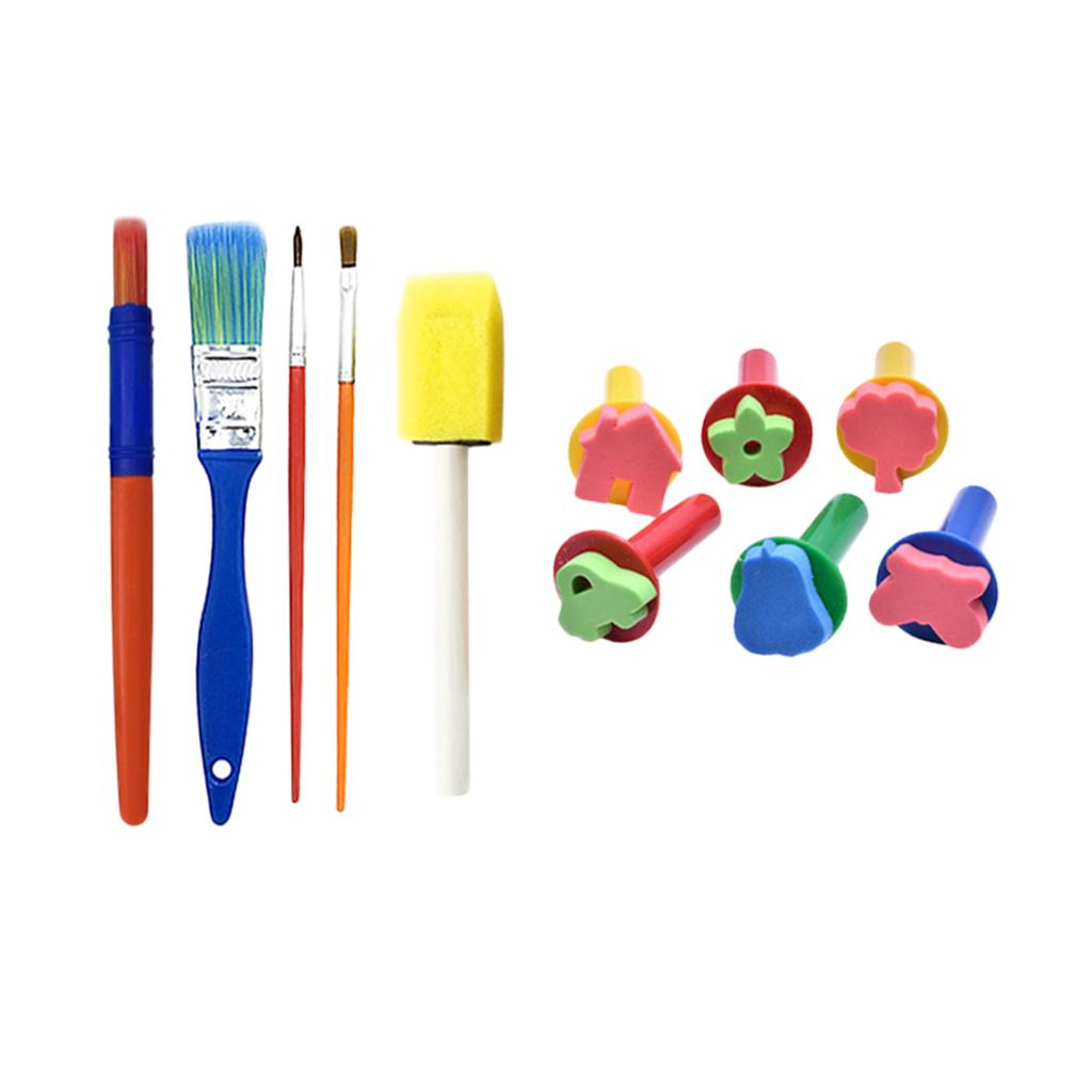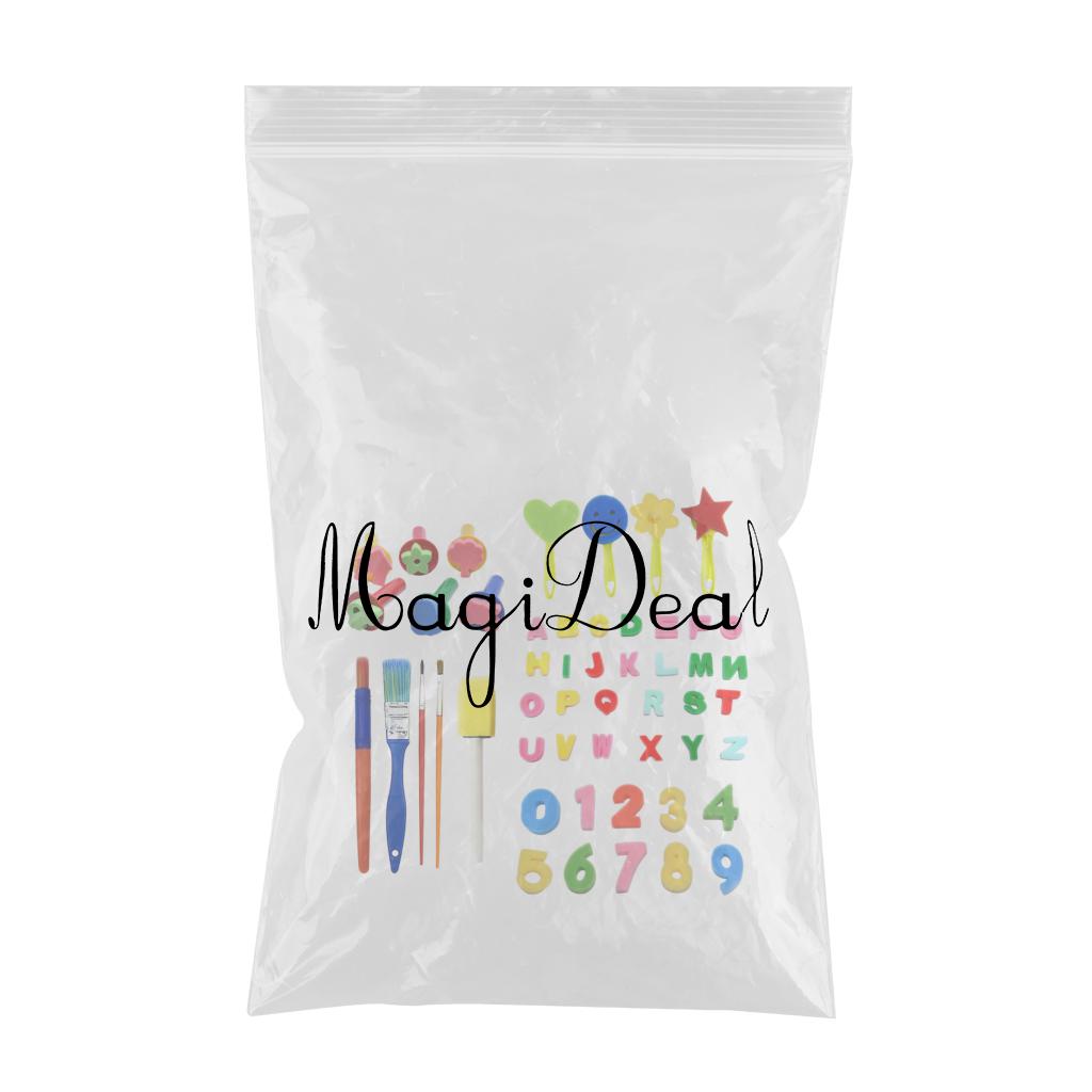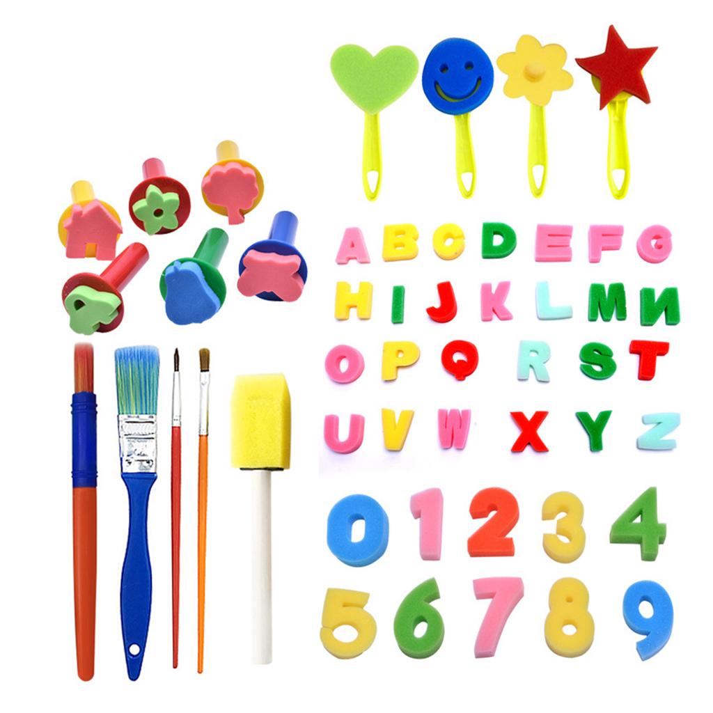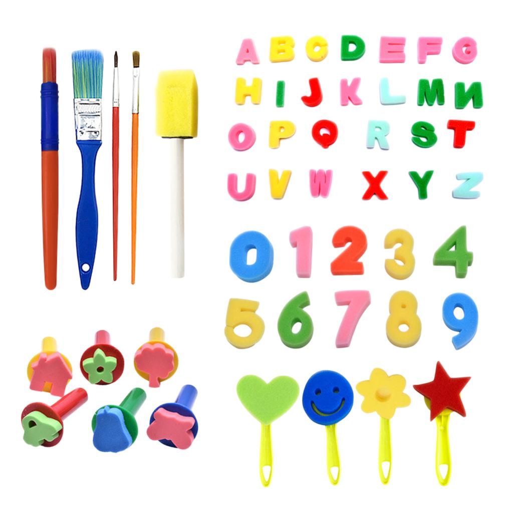 Set Iuncludes: 50 Pieces include---6x Roller sponge brushes, 5xSponge brushes, 2x Paint Brush, 2x Fine brush, 36x number letter sponge stamper .