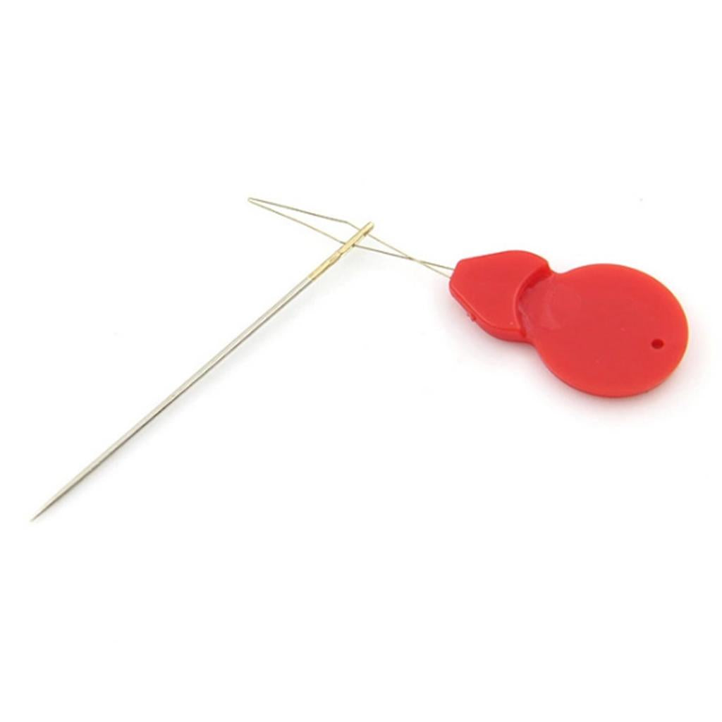 Please follow the instruction as the picture shows: insert the device through the needle, wind thread on it then pull the thread out of the hole