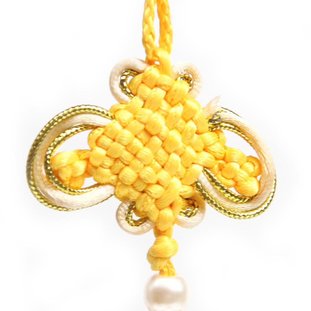 Smile Face Chinese Knot Tassel Dangling Fengshui Car Pendant Beige