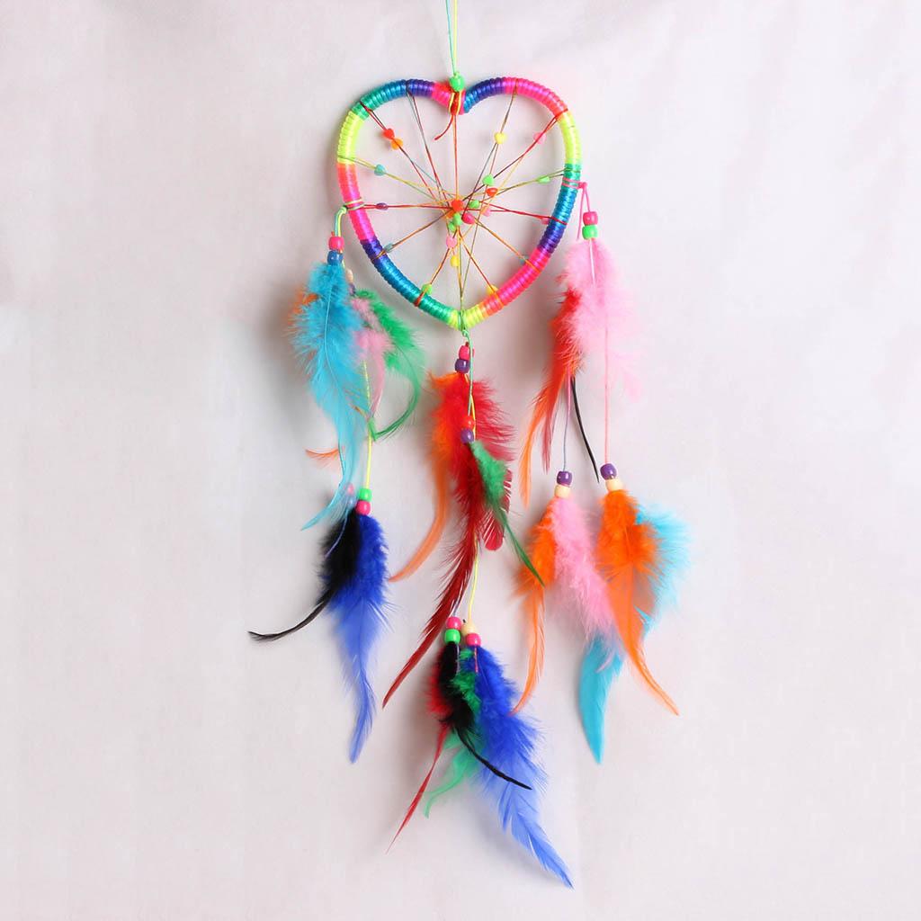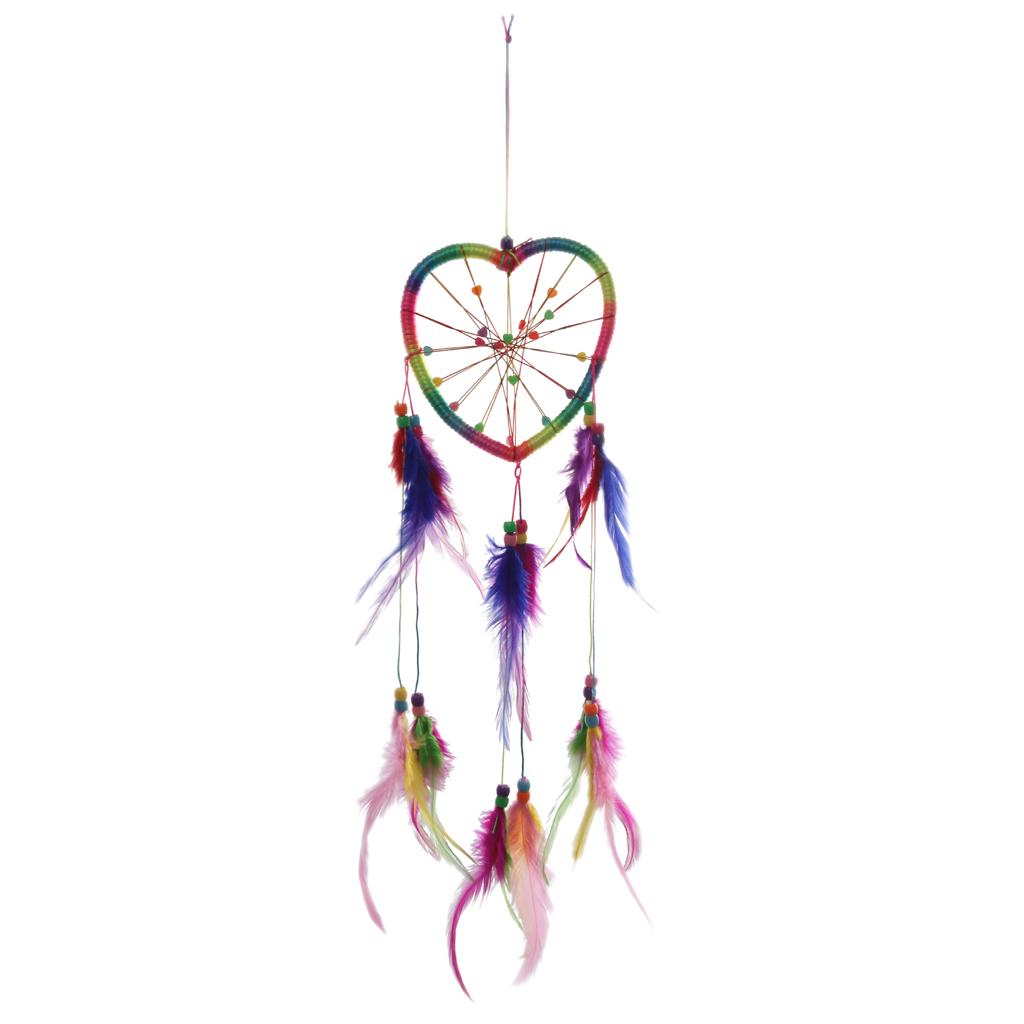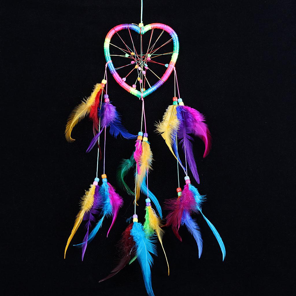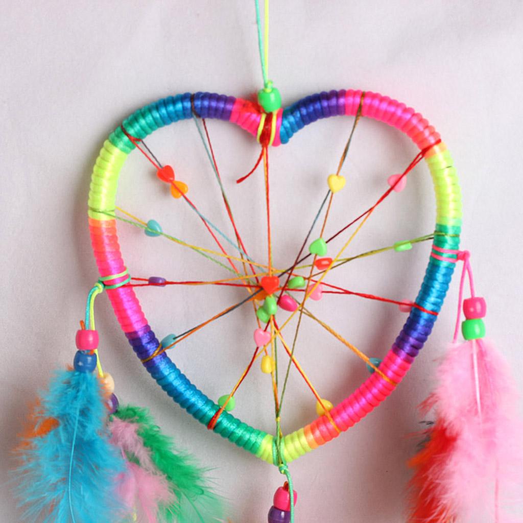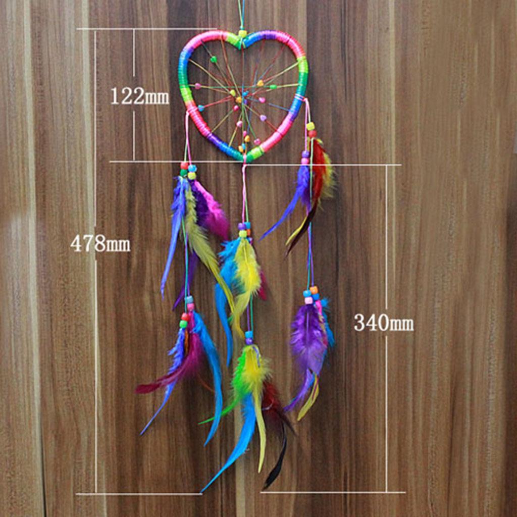 Boho Rainbow Heart Shape Feather Dream Catcher Home Wall Hanging Decor