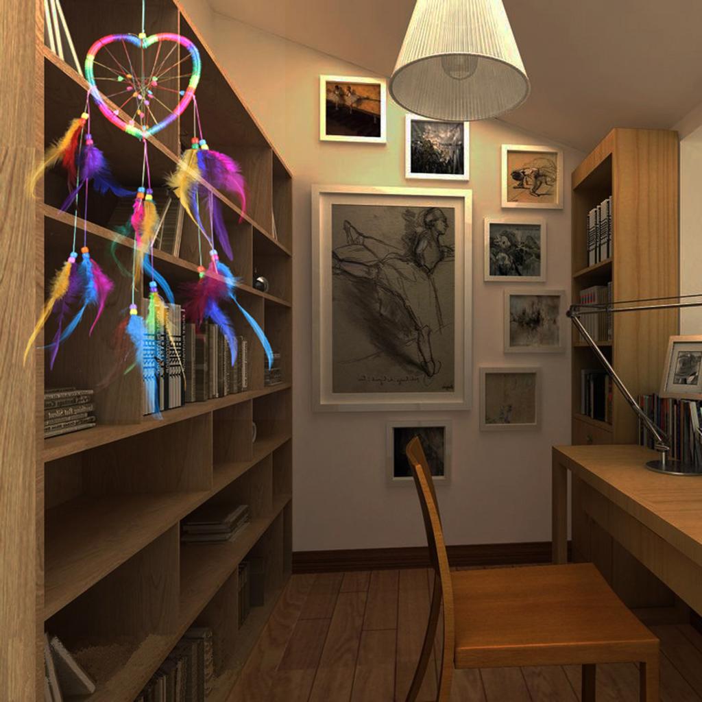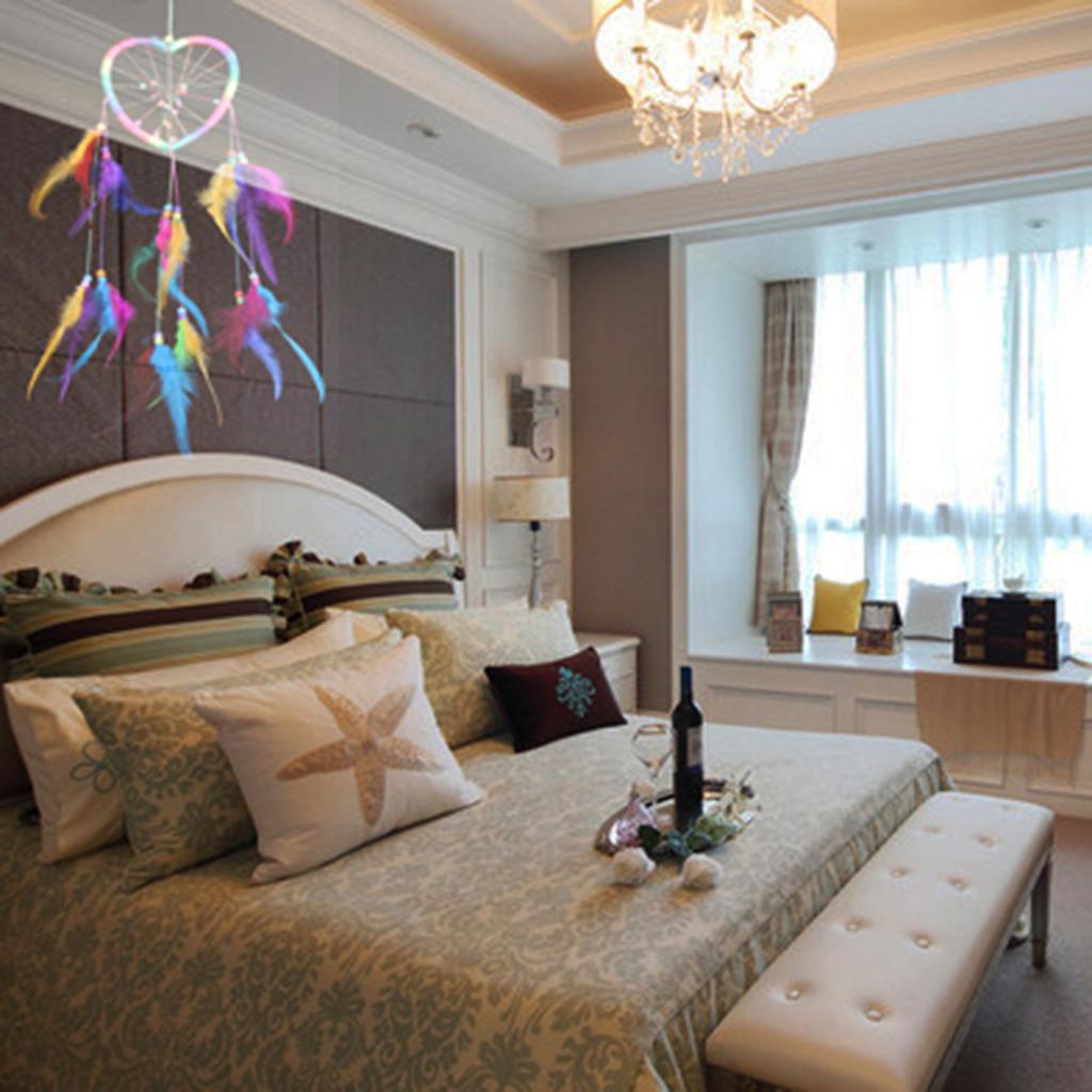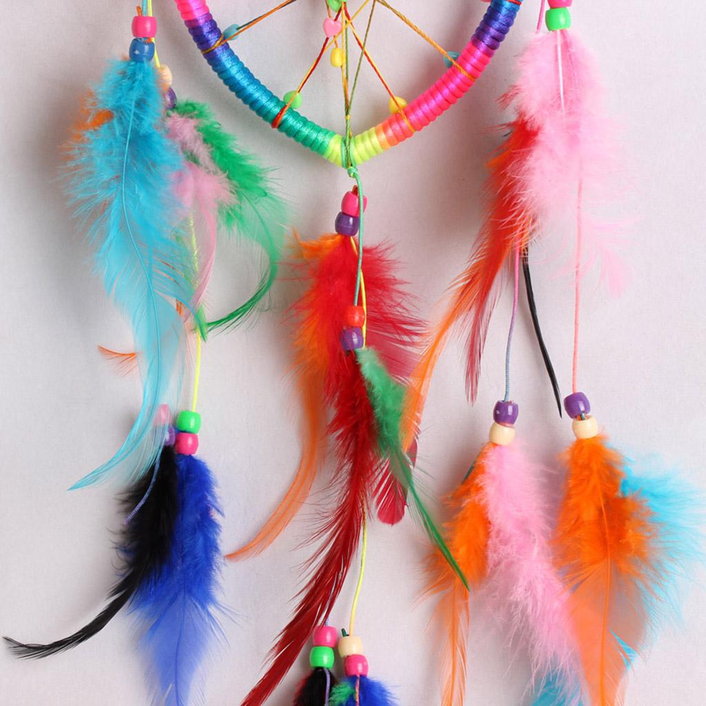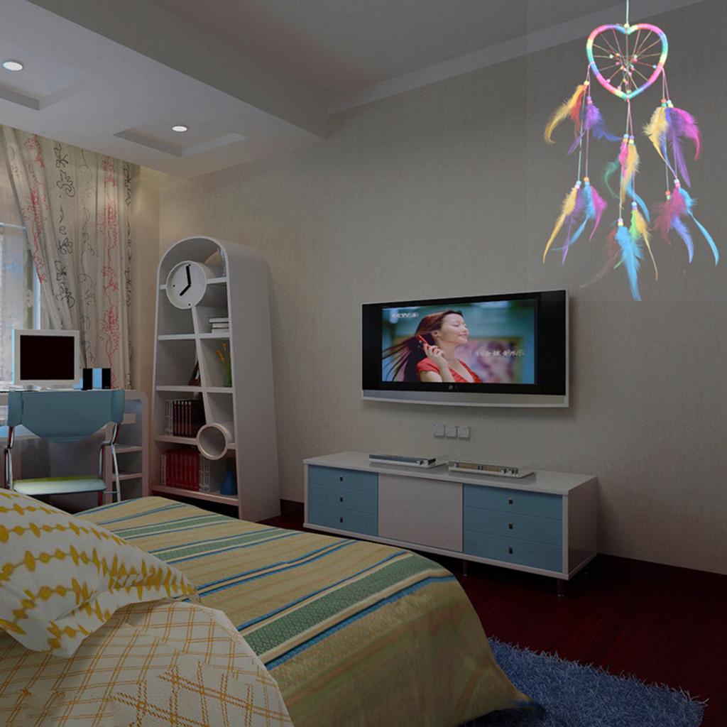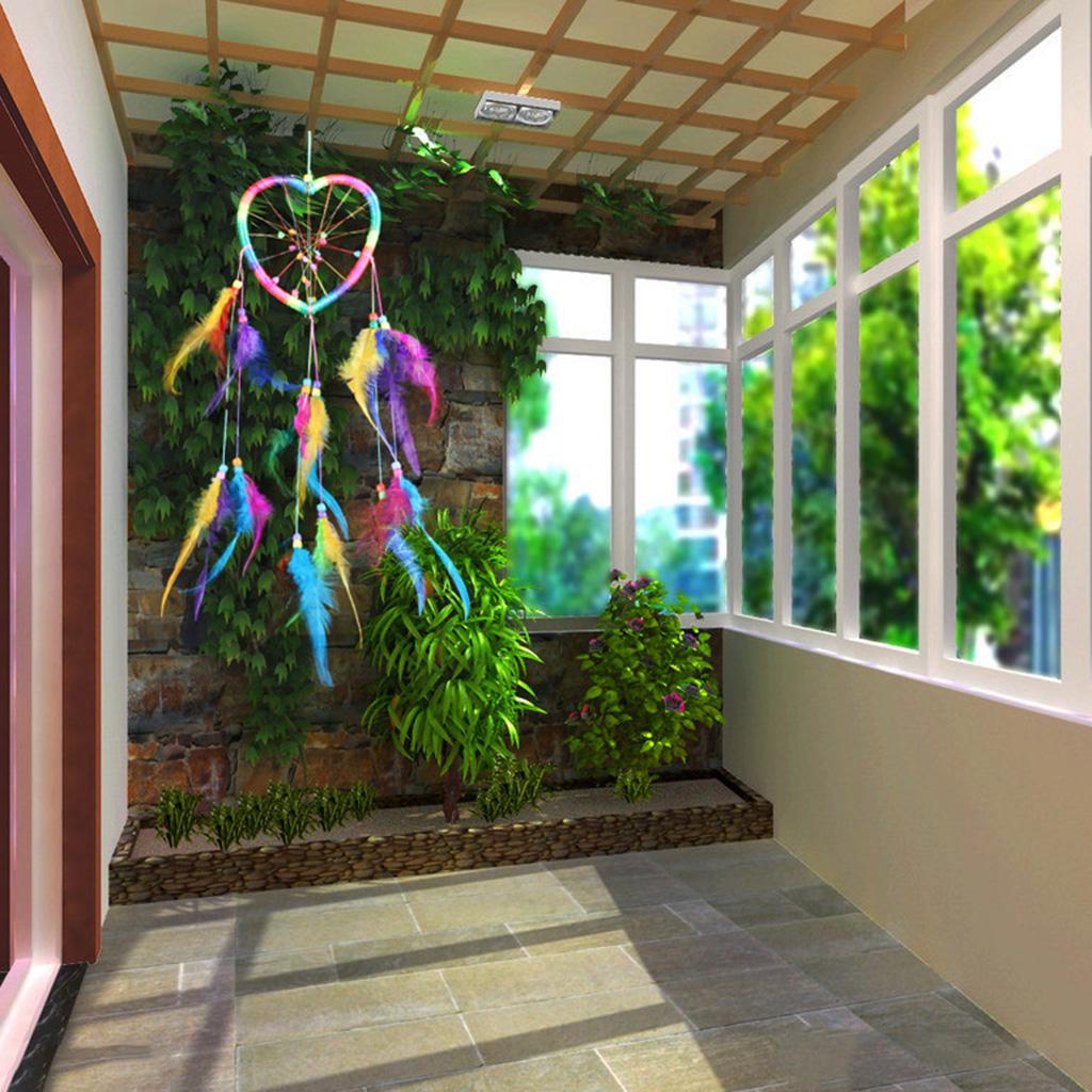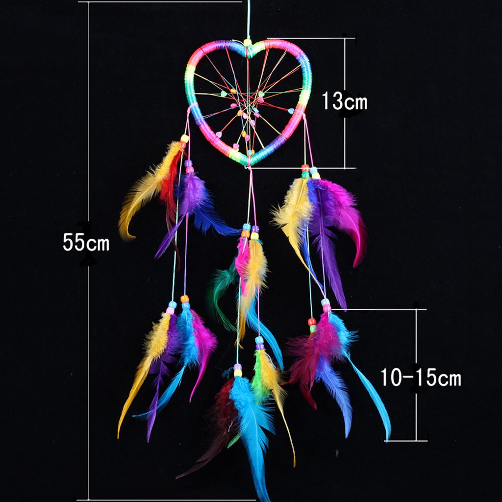 Boho Rainbow Heart Shape Feather Dream Catcher Home Wall Hanging Decor