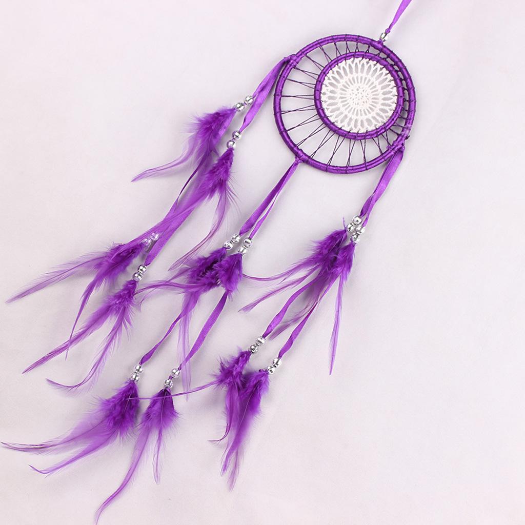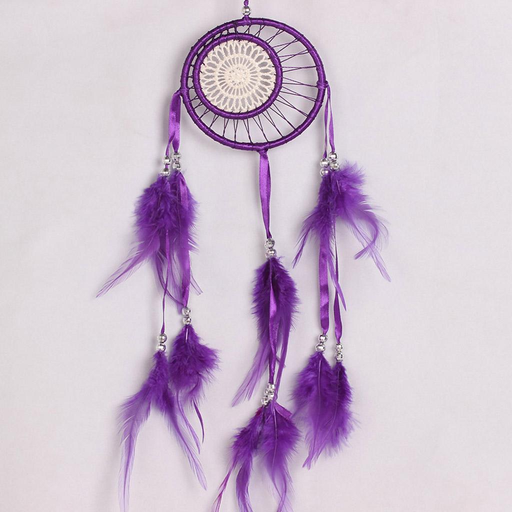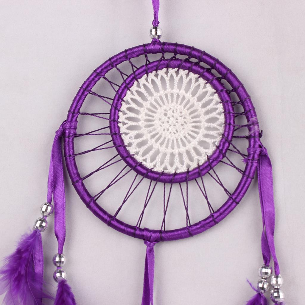Purple Ribbon Circle Feather Dream Catcher Home Wall Hanging Decor