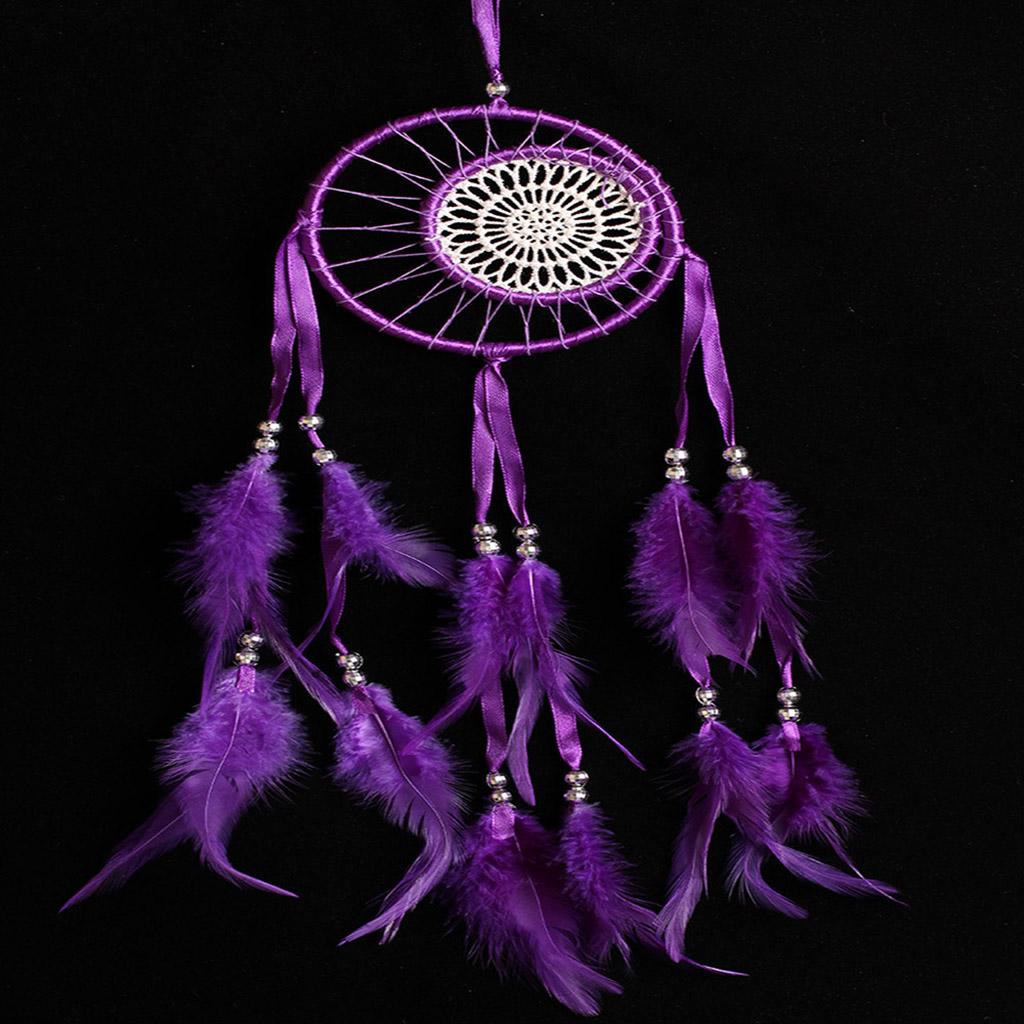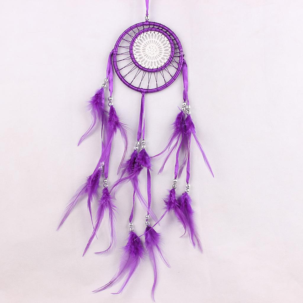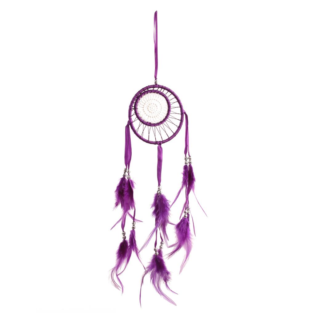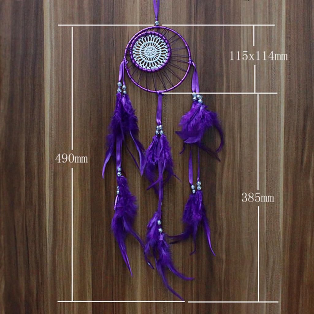 Purple Ribbon Circle Feather Dream Catcher Home Wall Hanging Decor