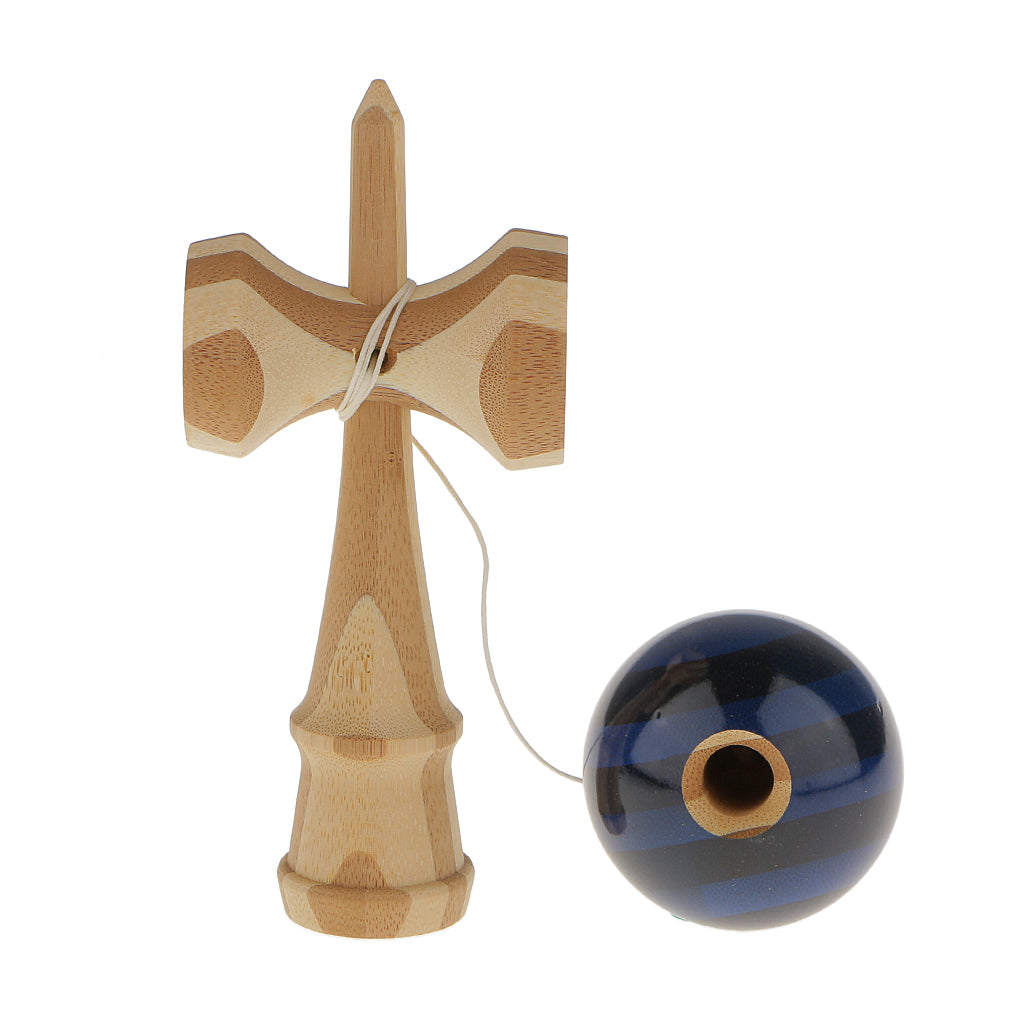 Wooden Blue Paint Bamboo Pattern Kendama Toy Skill Ball Kid Sport Party Game