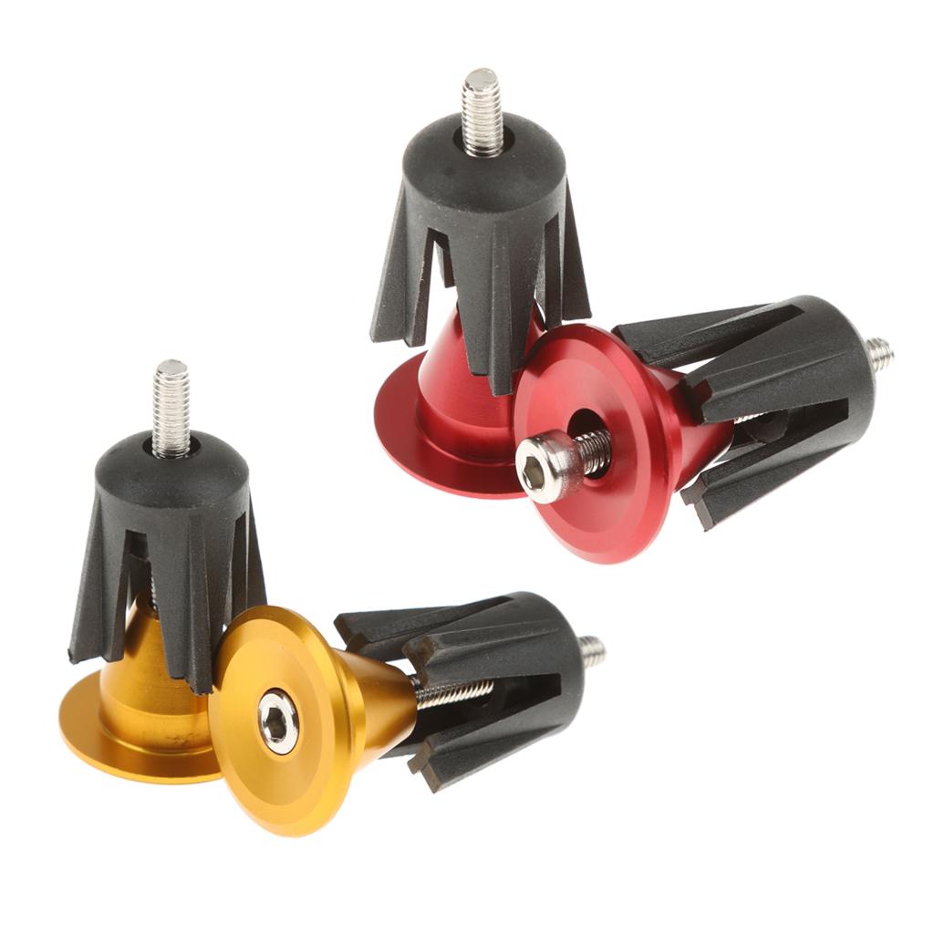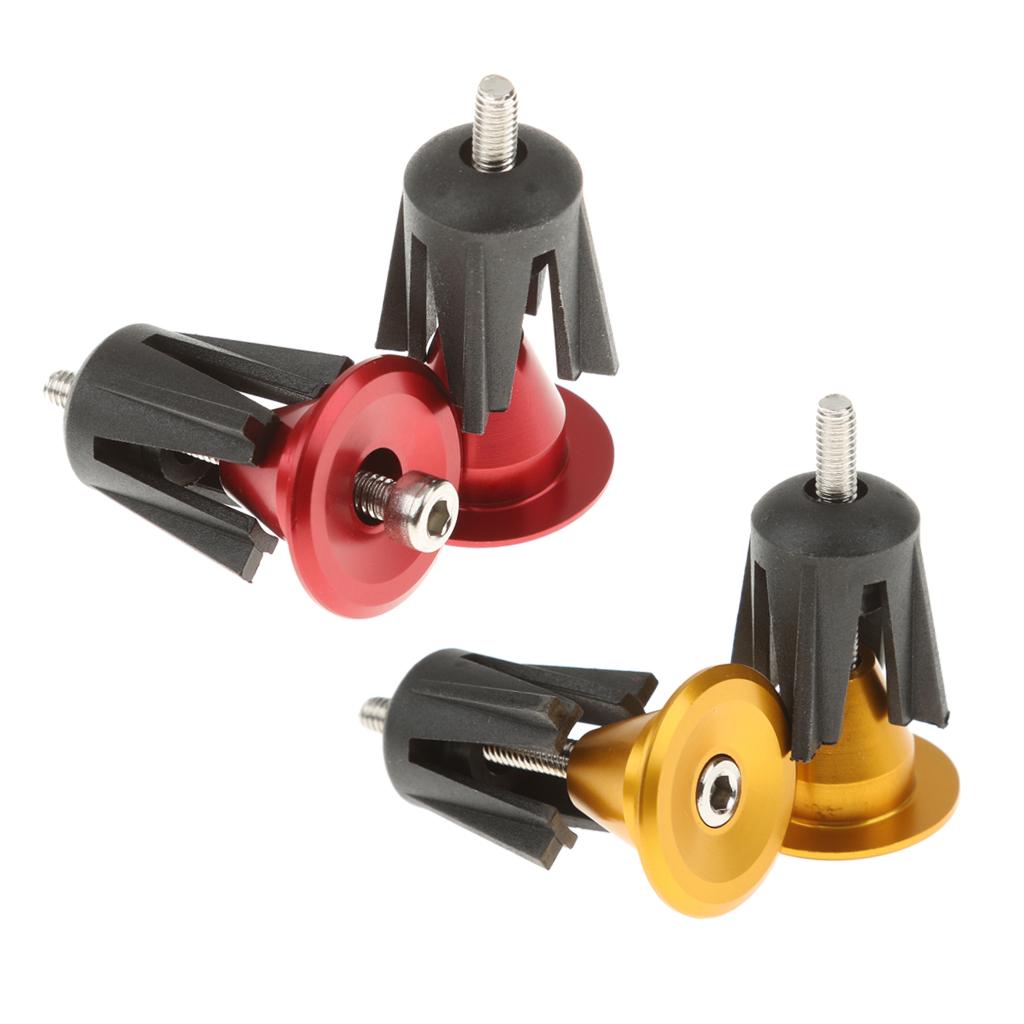 2 Pairs Gold Red Aluminum Alloy MTB Road Mountain Bicycle Cycling Handlebar Grips Handle Bar Cap End Plugs Accessories