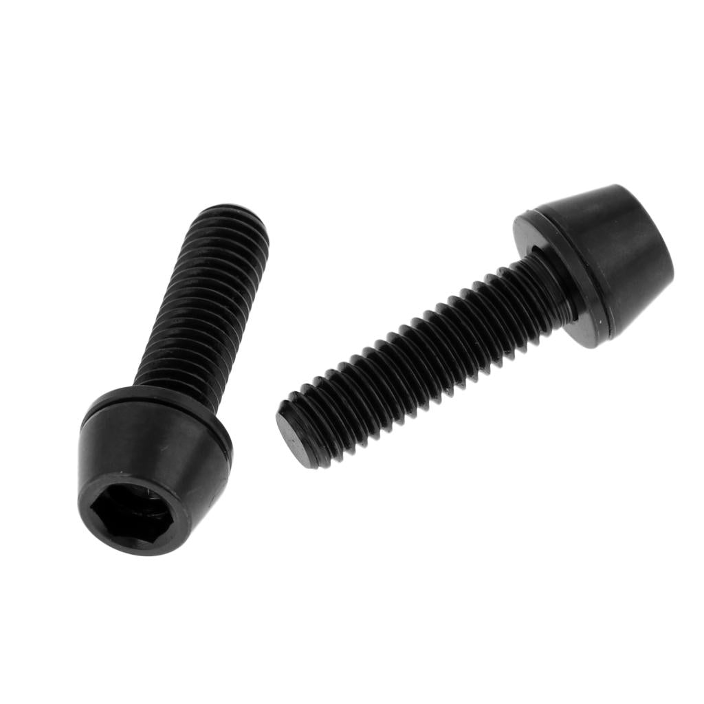 2 Pieces Titanium Alloy Bike Tapered Head Bolt Screws Washer M5x18, Black