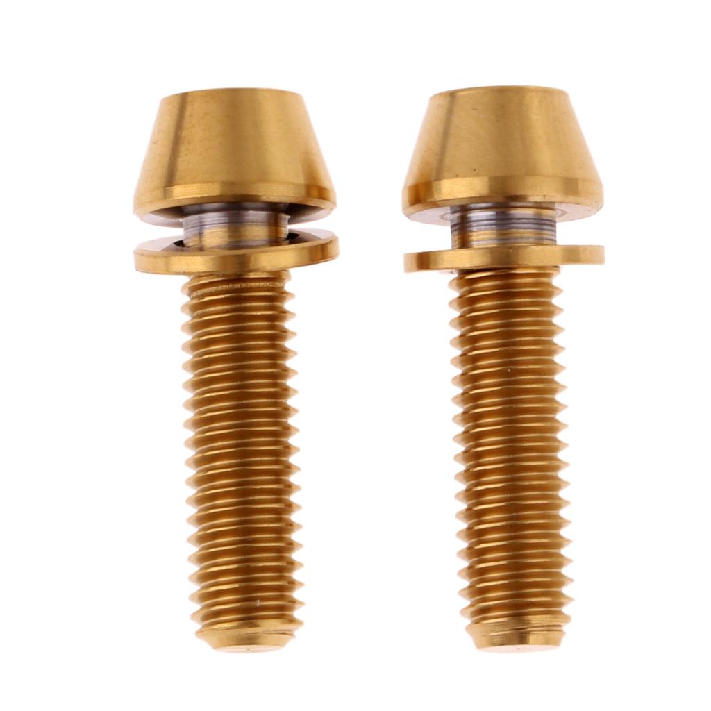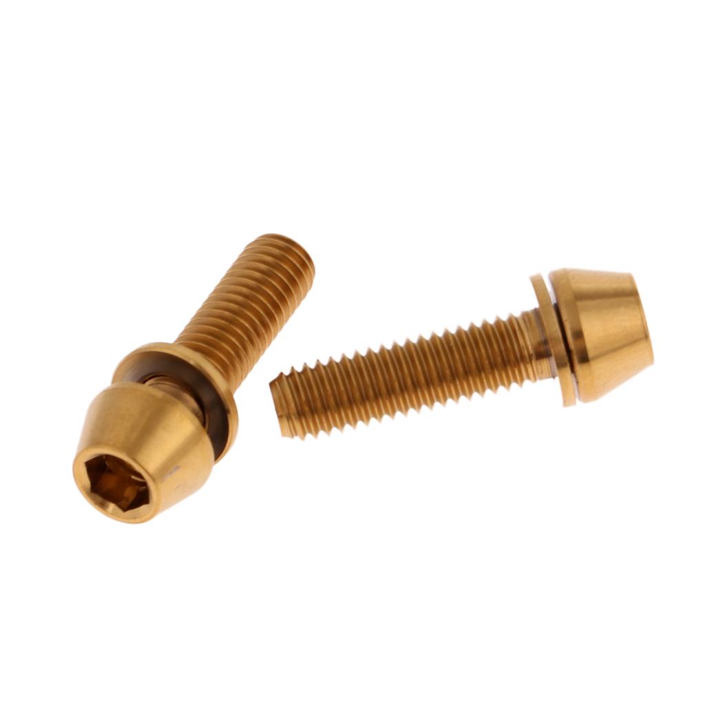 2 Pieces Titanium Alloy Bike Tapered Head Bolt Screws Washer M5x18, Gold