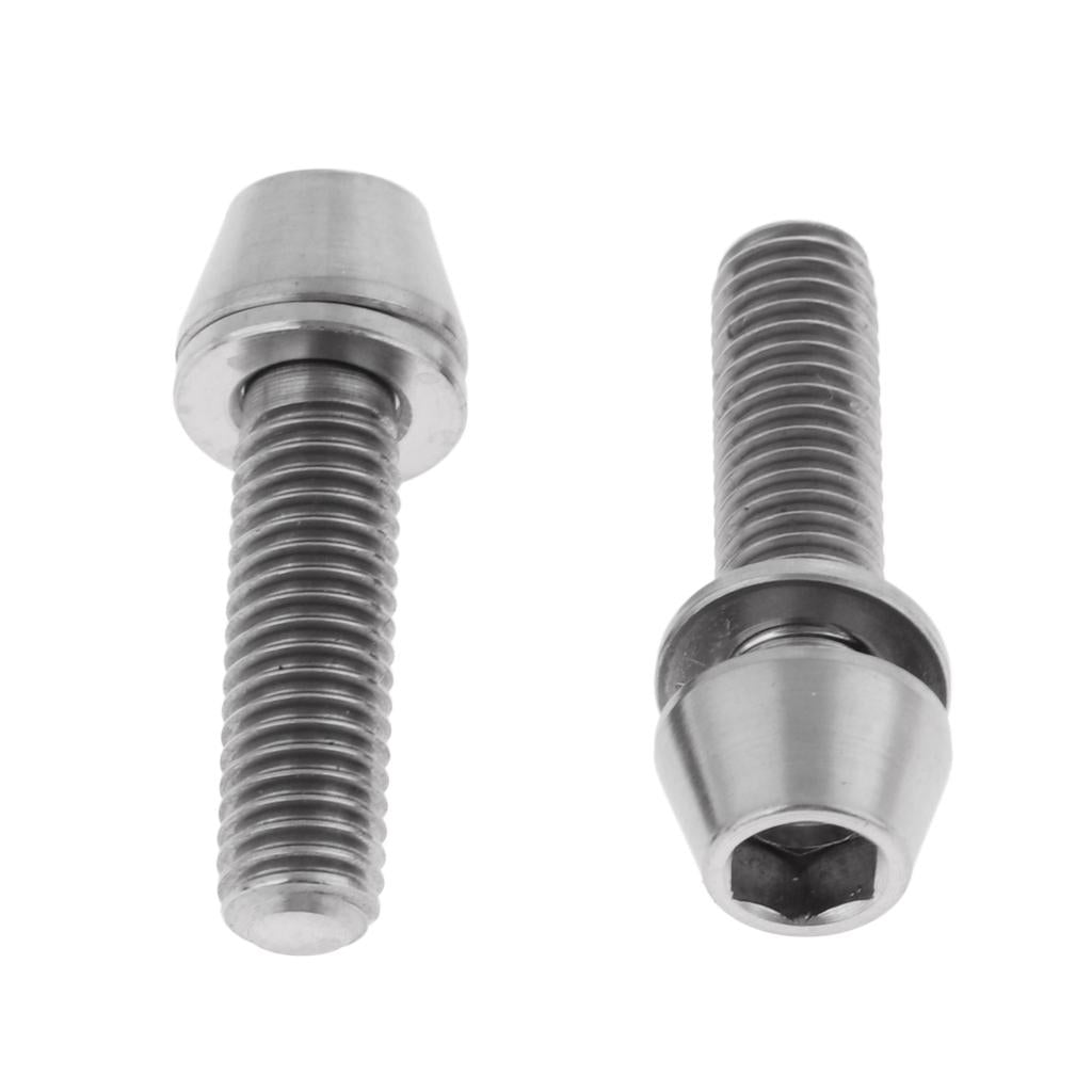 2 Pieces Titanium Alloy Bike Tapered Head Bolt Screws Washer M5x18, Silver