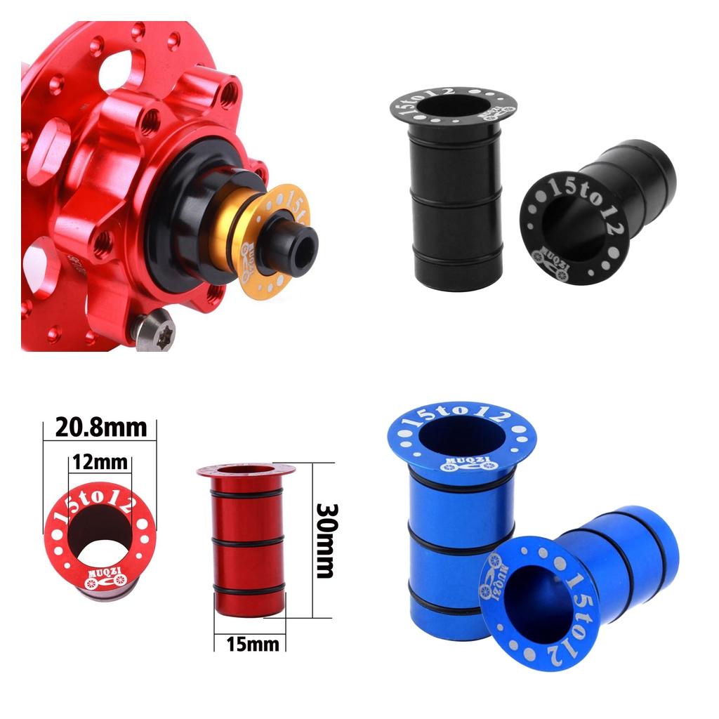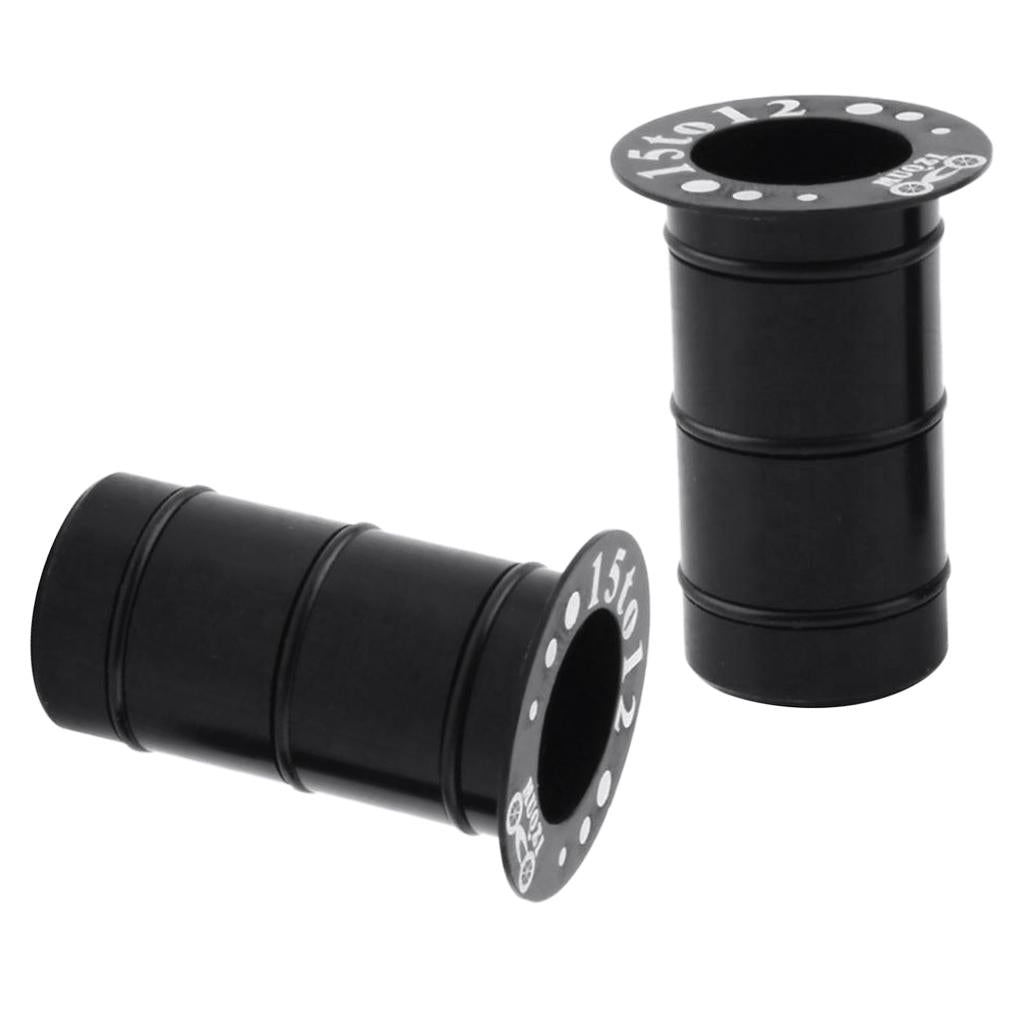 2Pcs Bike Hub Front Tube Shaft Conversion Seat Adapter 15mm to 12mm Black