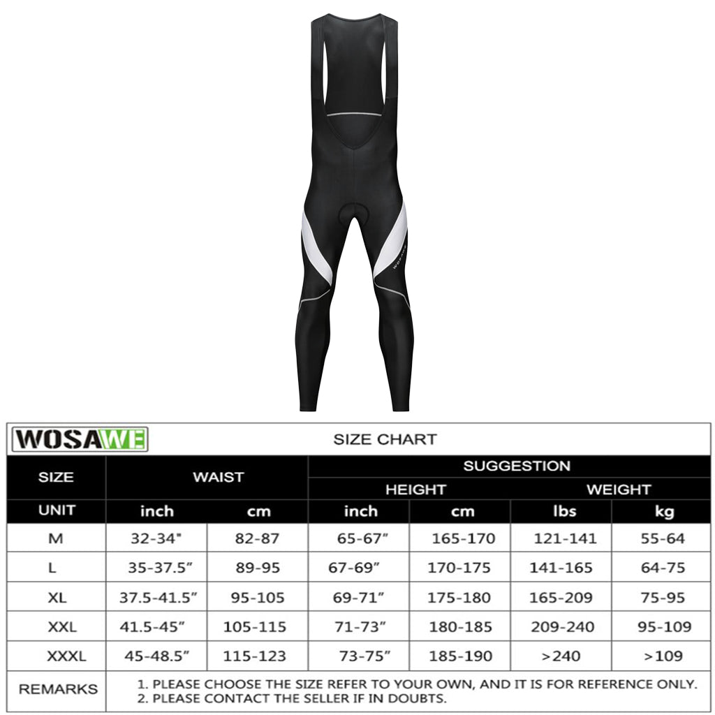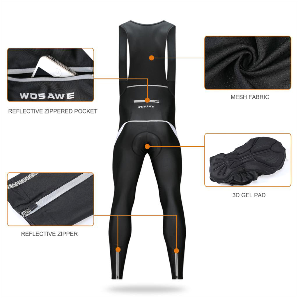 3D Padded Cycling Bib Pant Winter Thermal Padded Bib Tights Black White M
