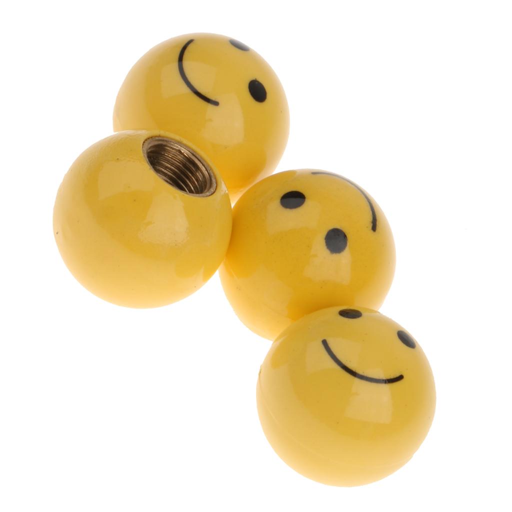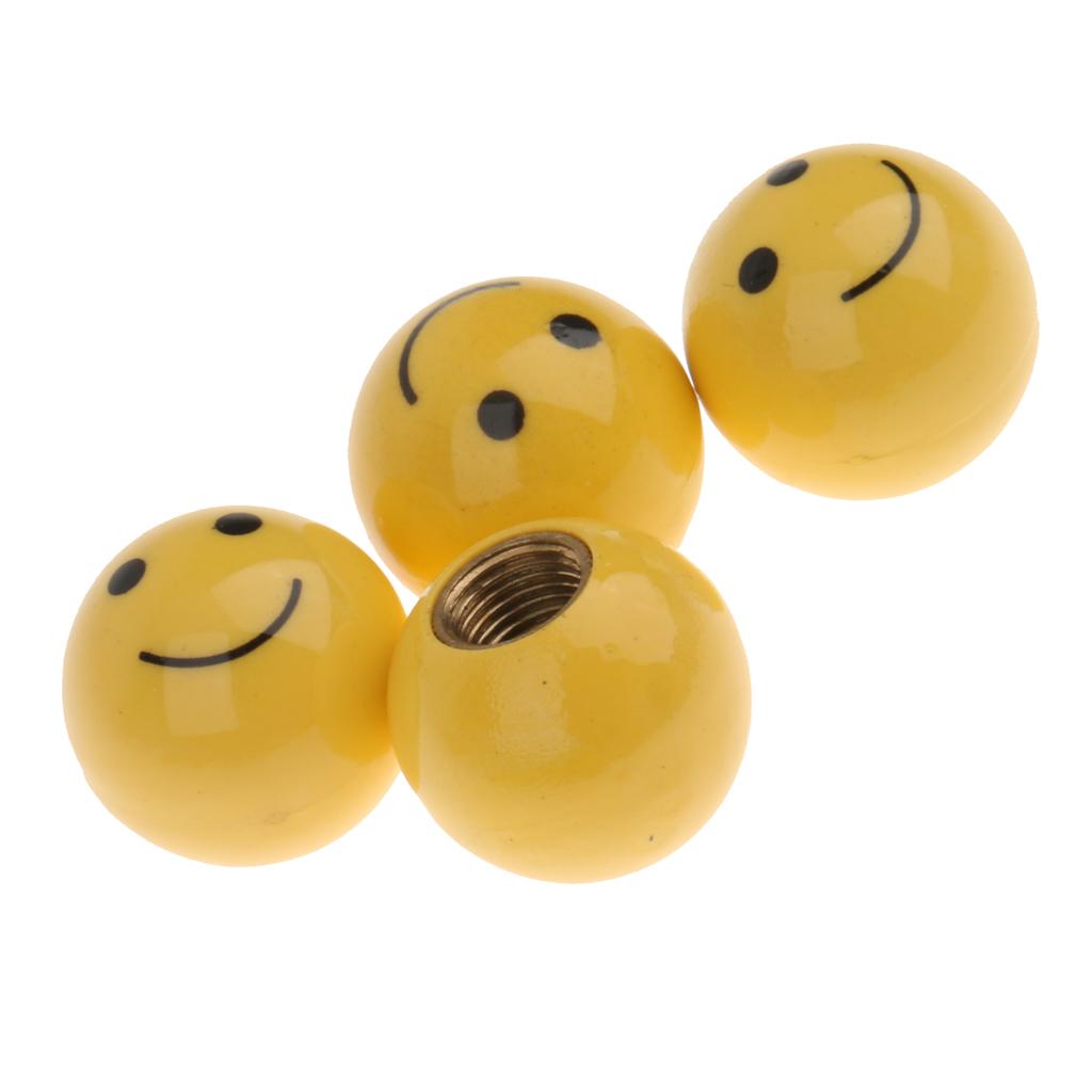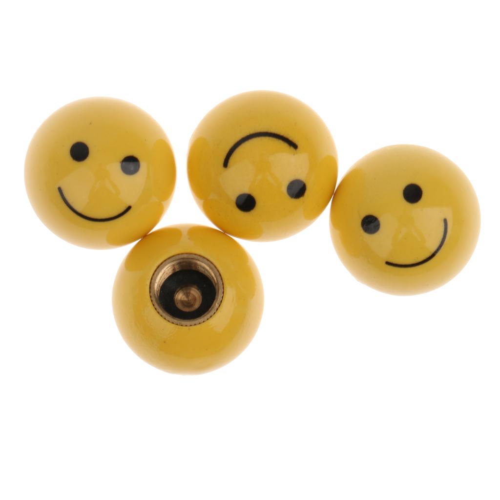 4pcs Mini Smile Smiling Face Yellow Valve Caps Dust Cover for BMX Bike Car