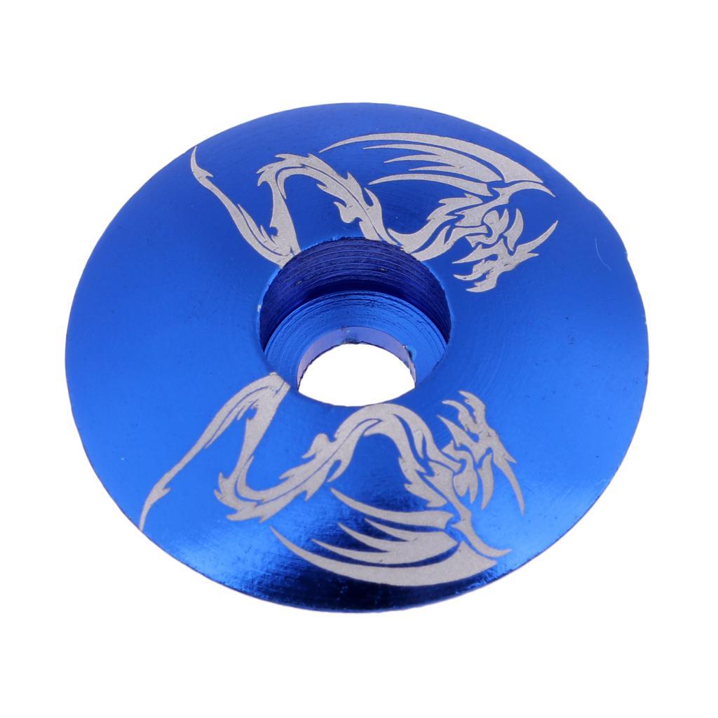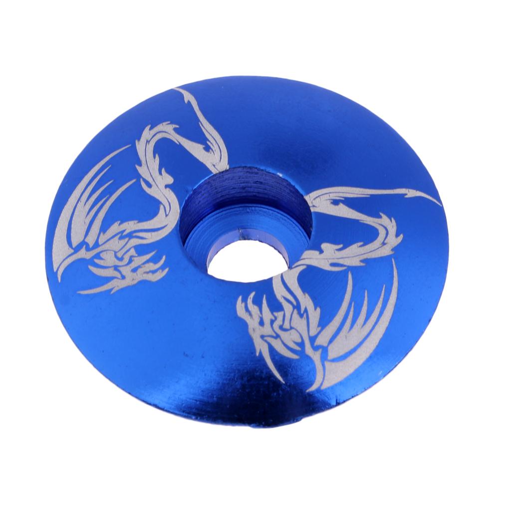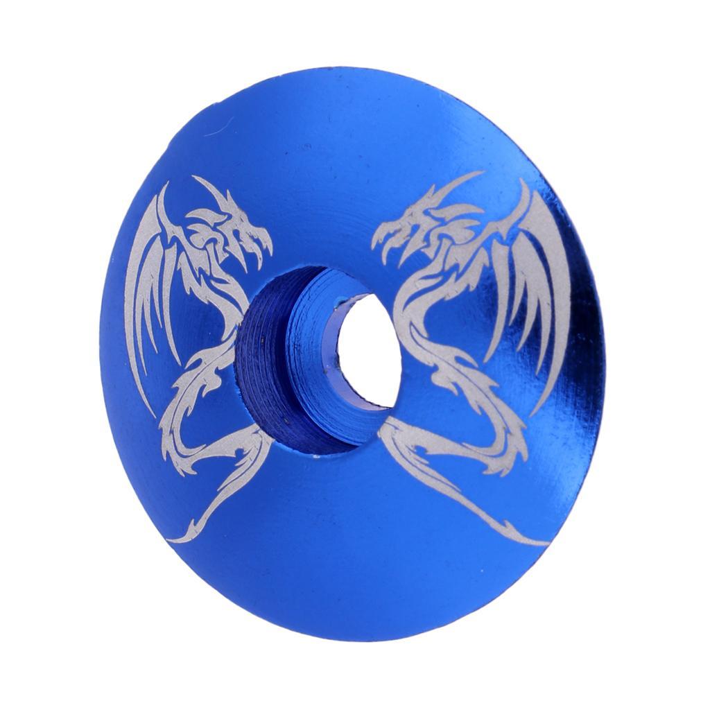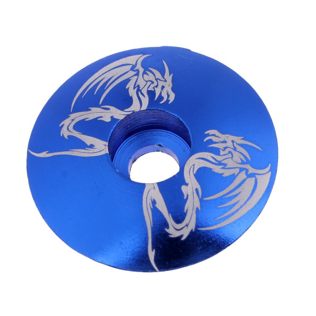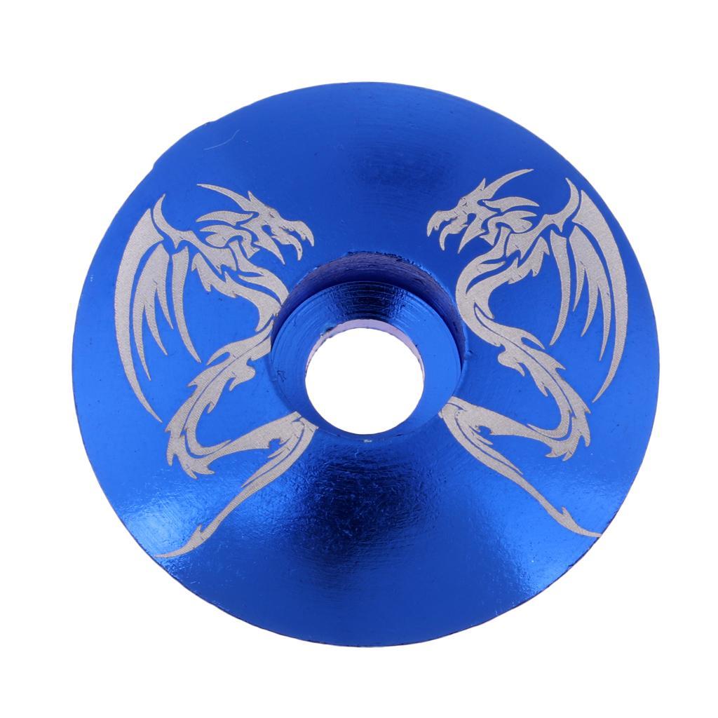 Aluminum Alloy Bicycle Threadless Stem Headset Top Cap Cover Blue Dragon