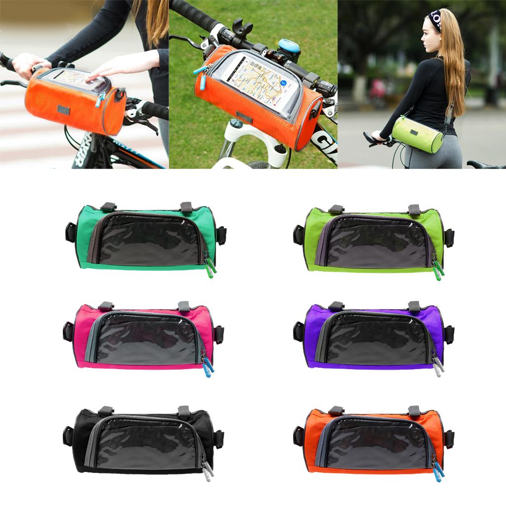 • With this bicycle handbar pannier mobile bag, a multi-function bike bag made with water resistant polyester that can stick on the tube it is easily to touch your smart phone when riding. Suitable for all types of bikes.