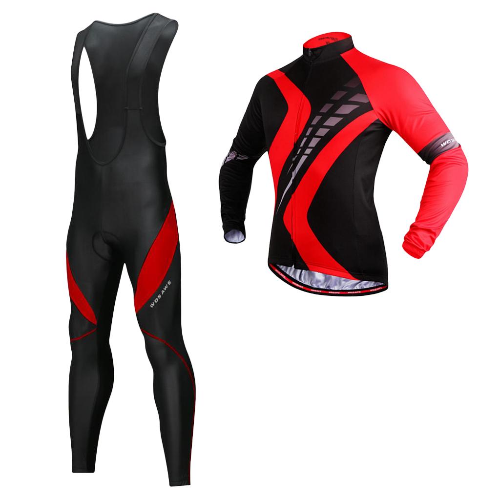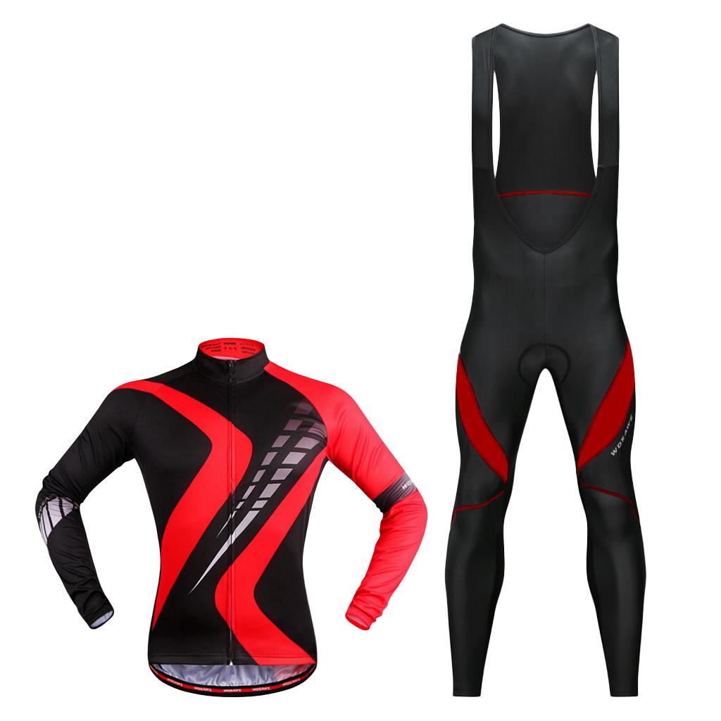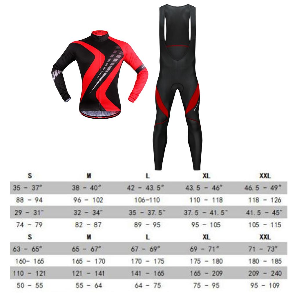 Bike Bicycle Cycling Long Jersey T Shirt Top with Bib Pants Set Red XL