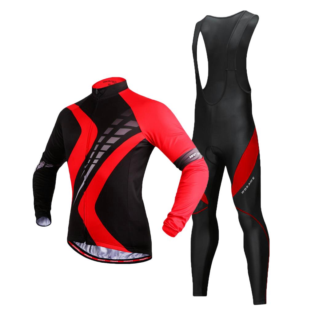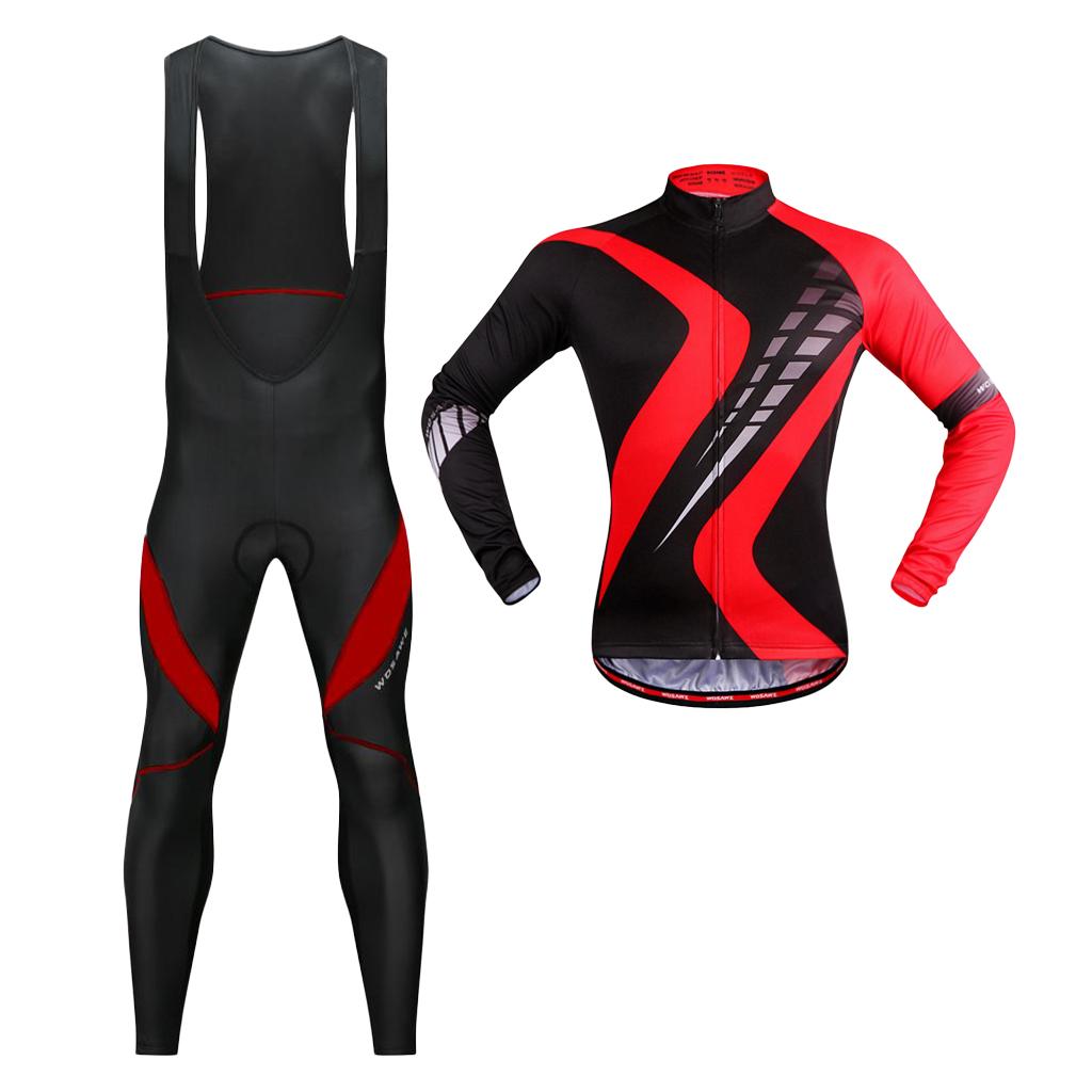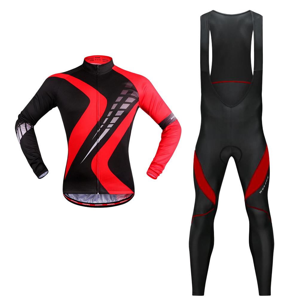 Bike Bicycle Cycling Long Jersey T Shirt Top with Bib Pants Set Red XL