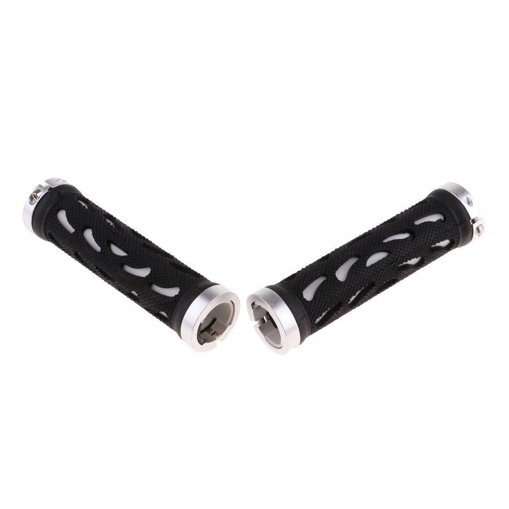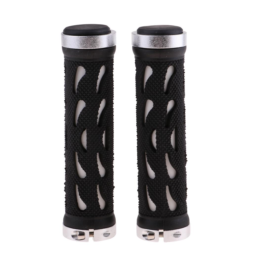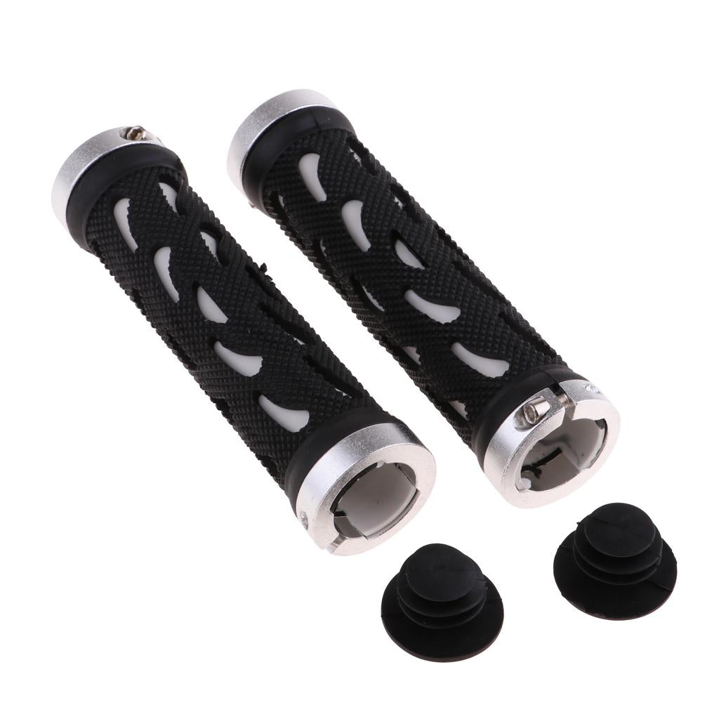 Double Lock-On Handlebar Grips Mountain Road Bike End Rubber Covers silver