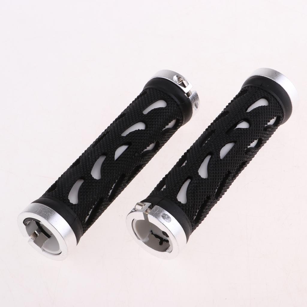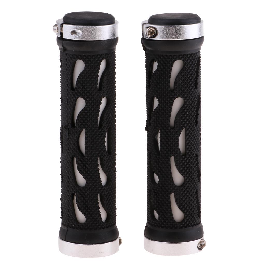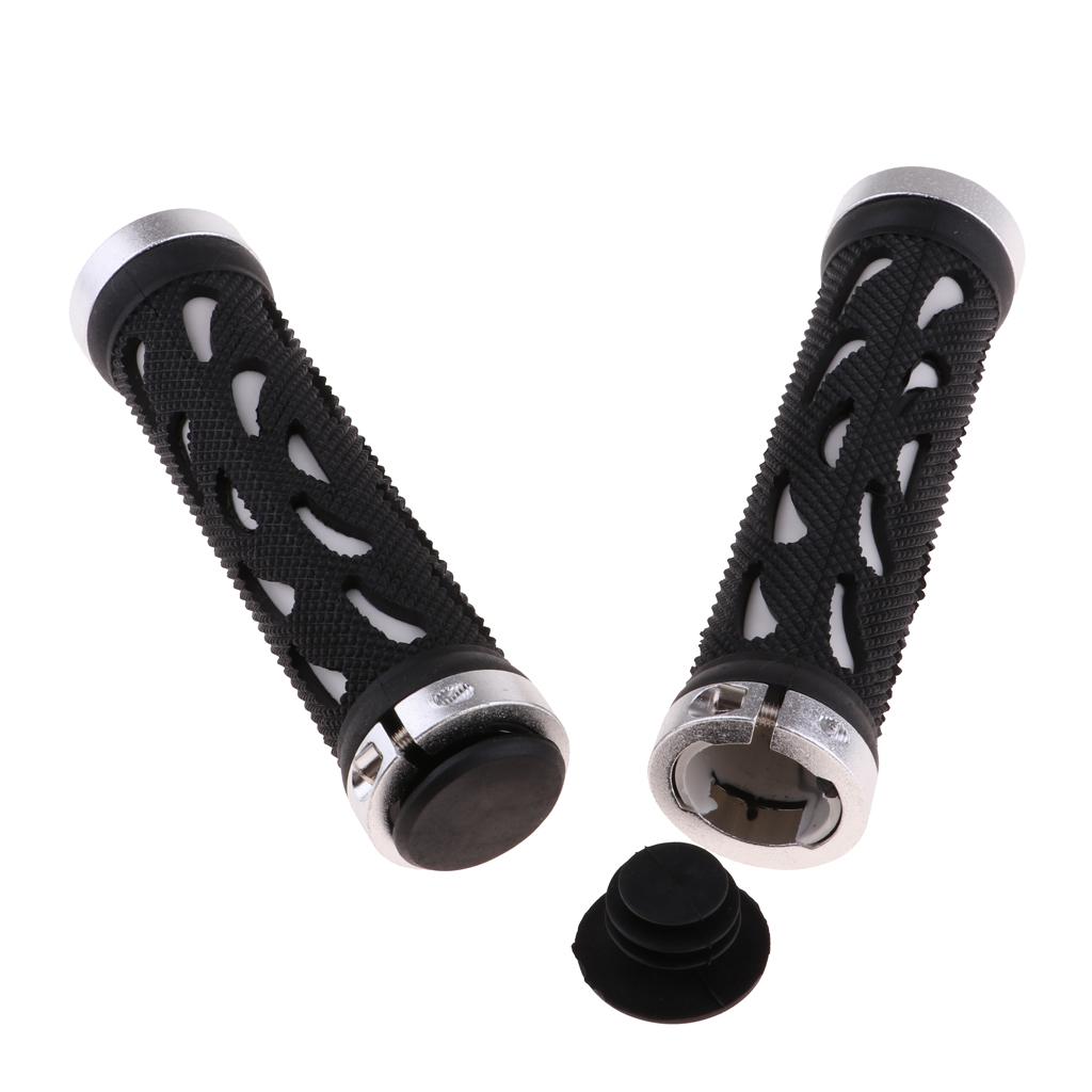 Double Lock-On Handlebar Grips Mountain Road Bike End Rubber Covers silver