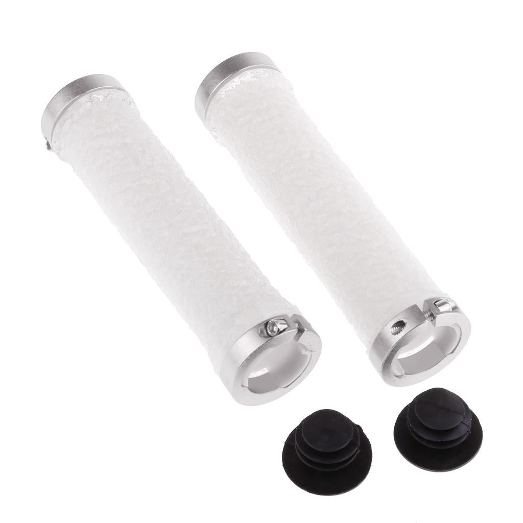 Ergonomic Mountain Bike Handlebar Grips Ends Cycling Lock-On Ends white