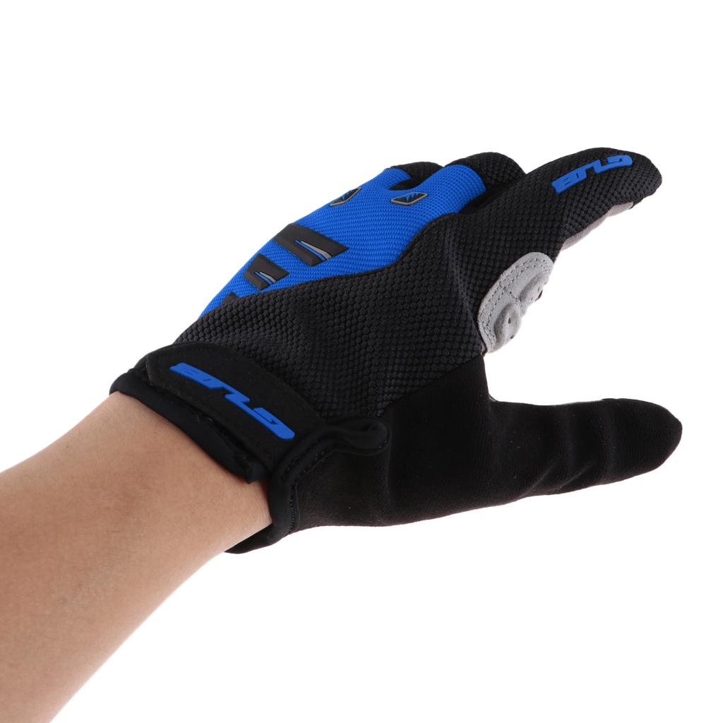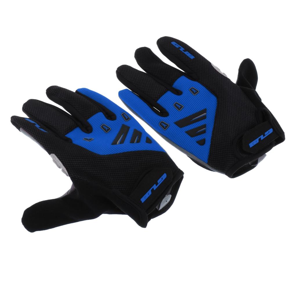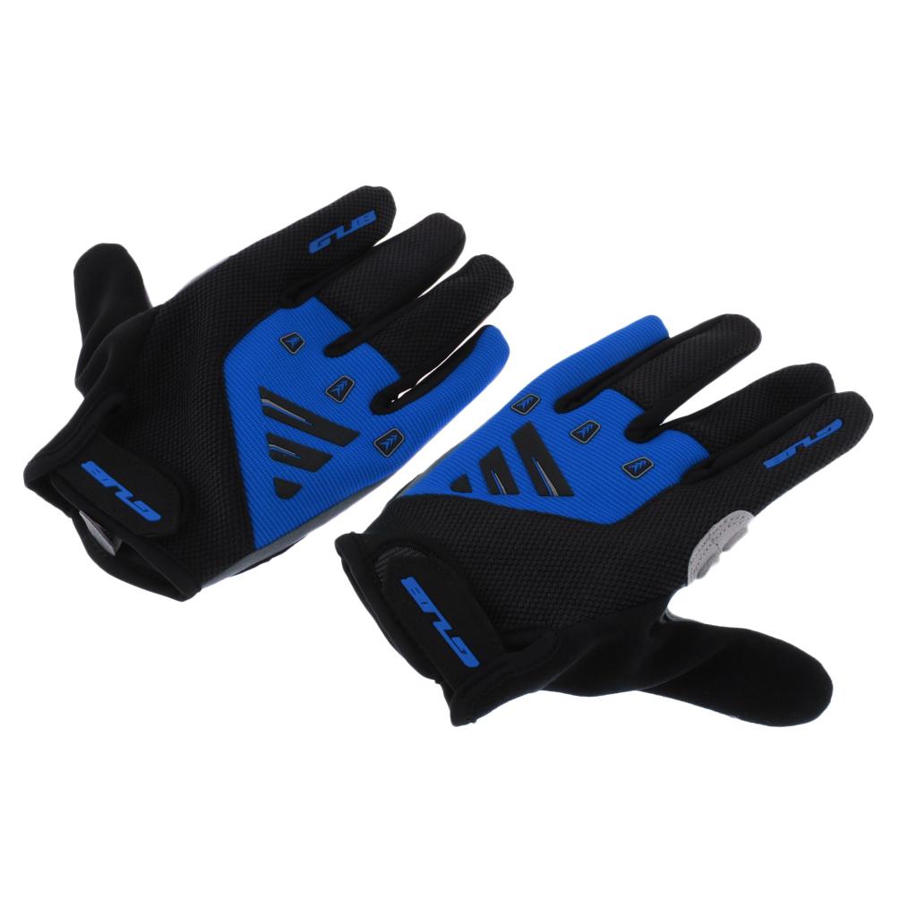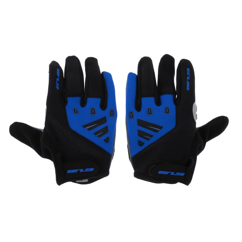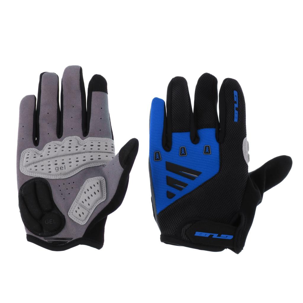 Full Finger Cycling Gloves Anti Slip MTB Bike Gel Gloves Black and Blue M