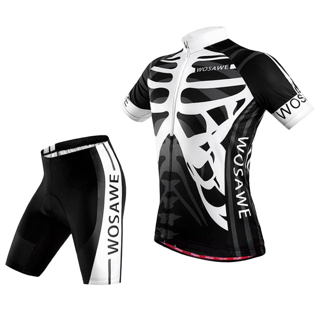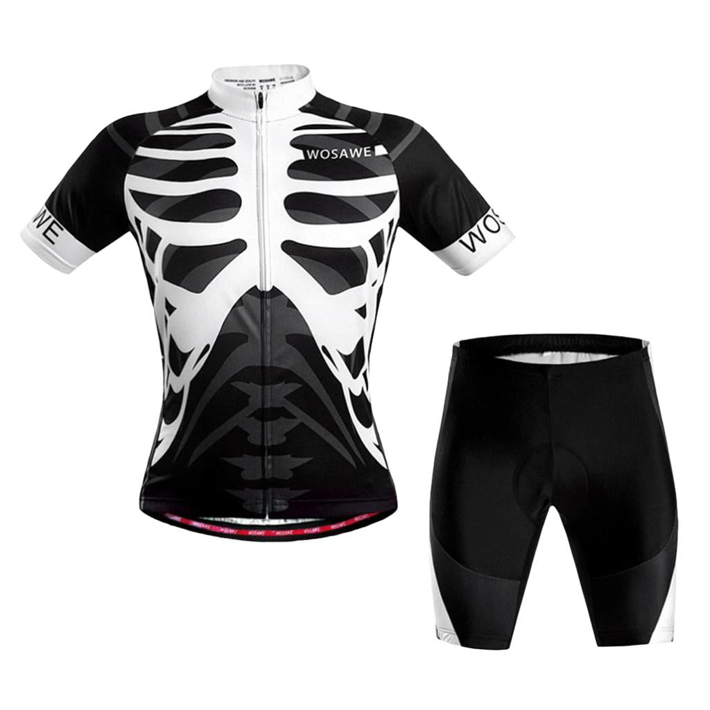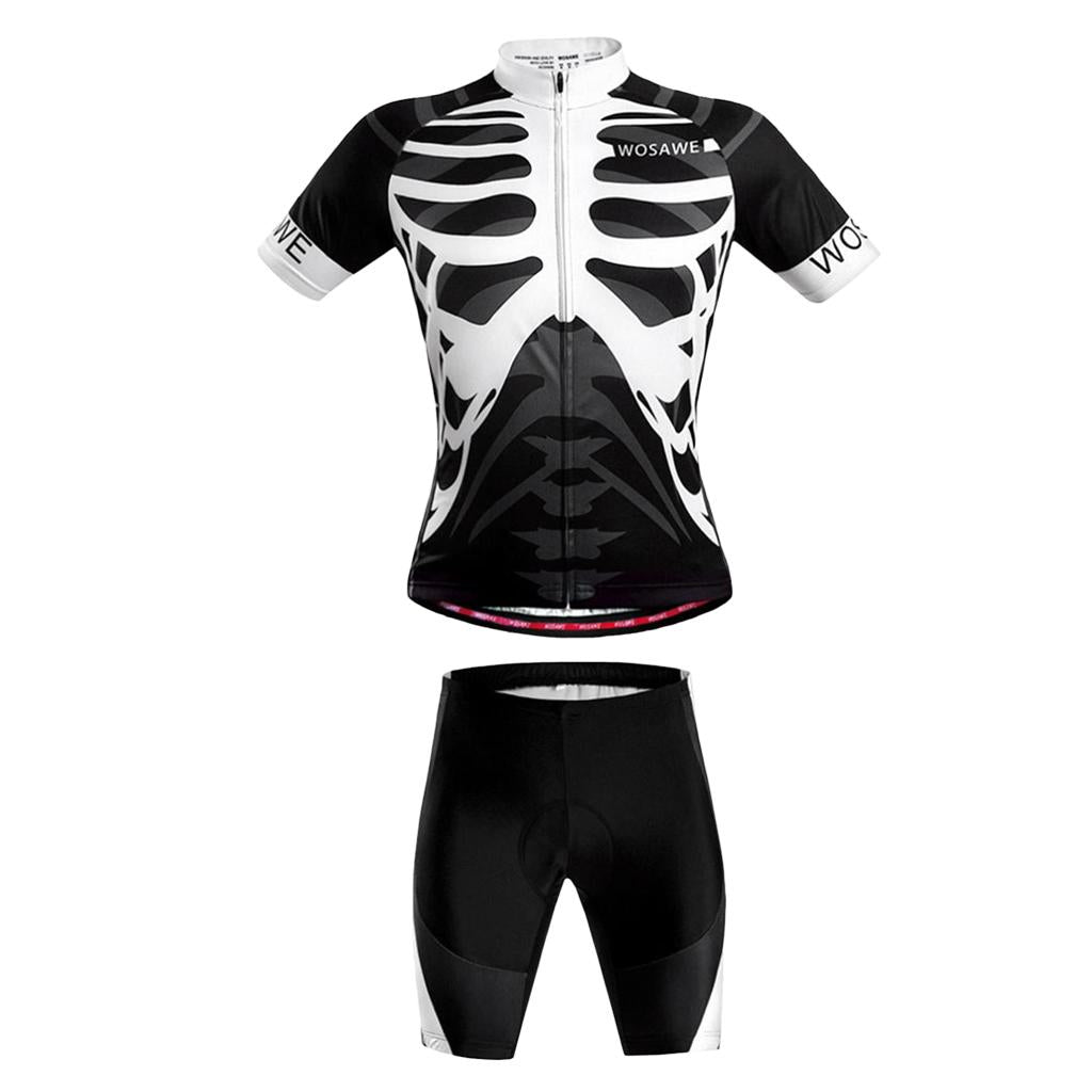 Men Bike Bicycle Cycling Jersey Skeleton T Shirt Top with Shorts Set XXL