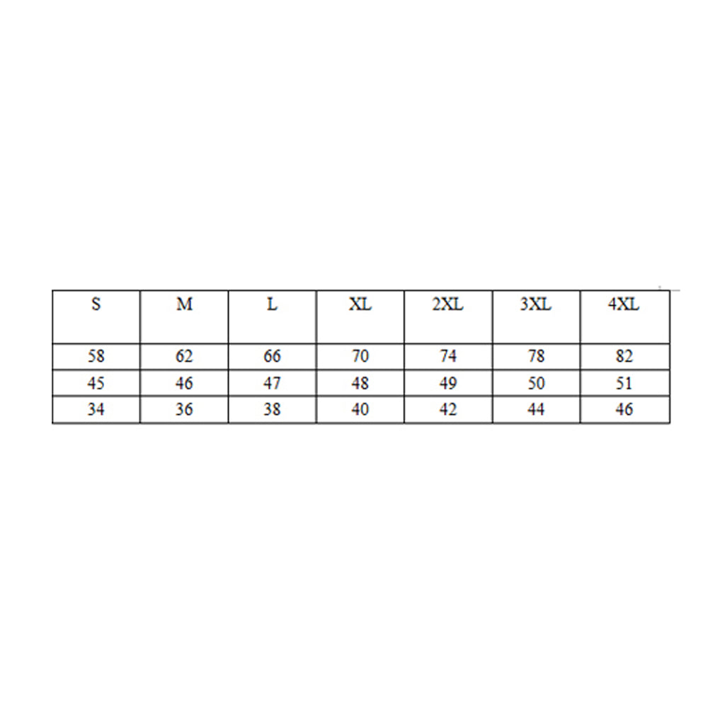 3XL       78cm/30.7inch          50cm/19.6inch                     44cm/17.3inch