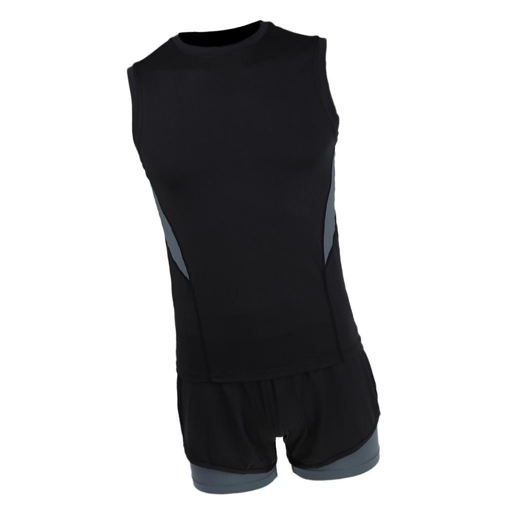 Men's Cycling Jersey Sleeveless Vest with Short Pants 3XL Gray Black