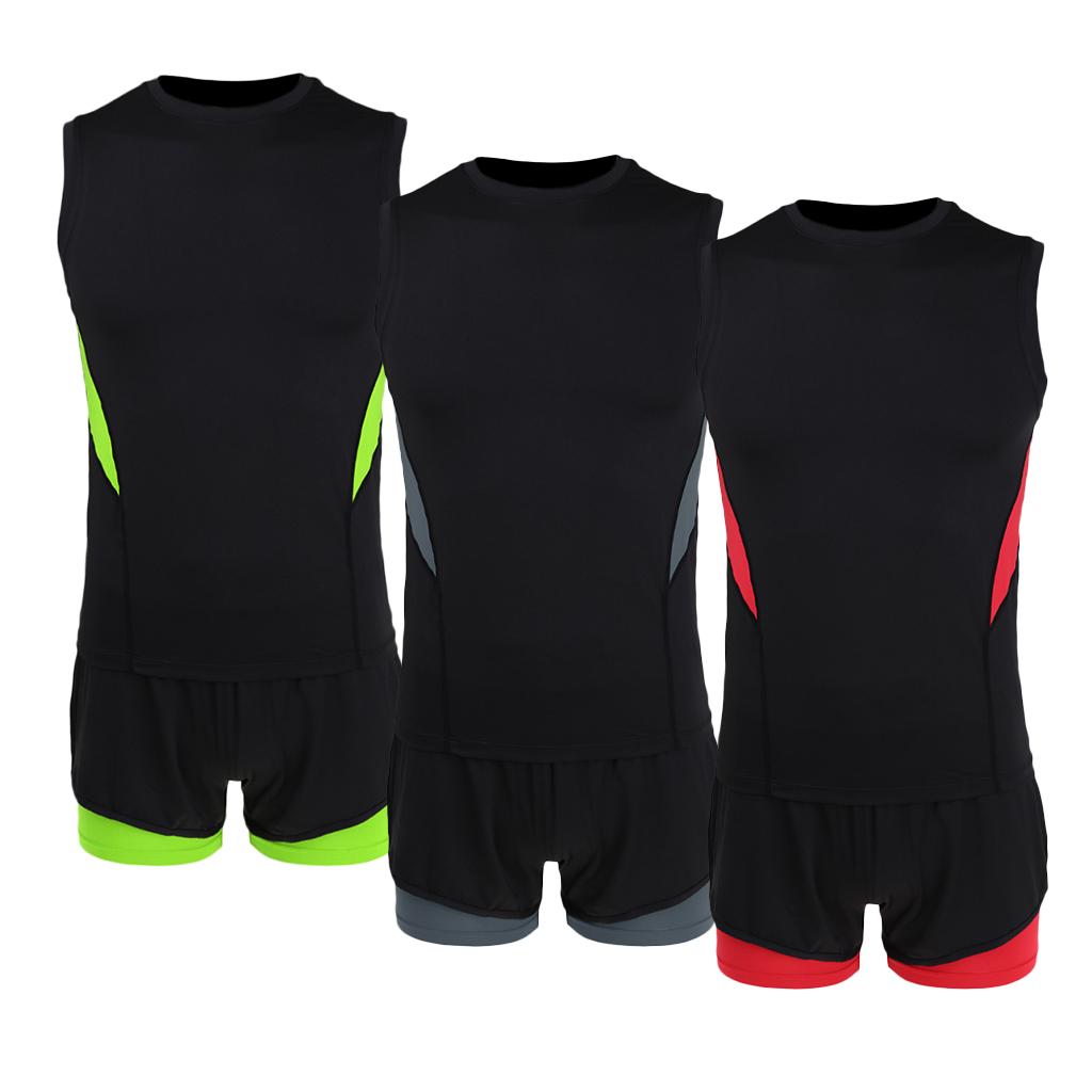 Super stretch adult men's sports cycling jersey sleeveless vest with short pants set