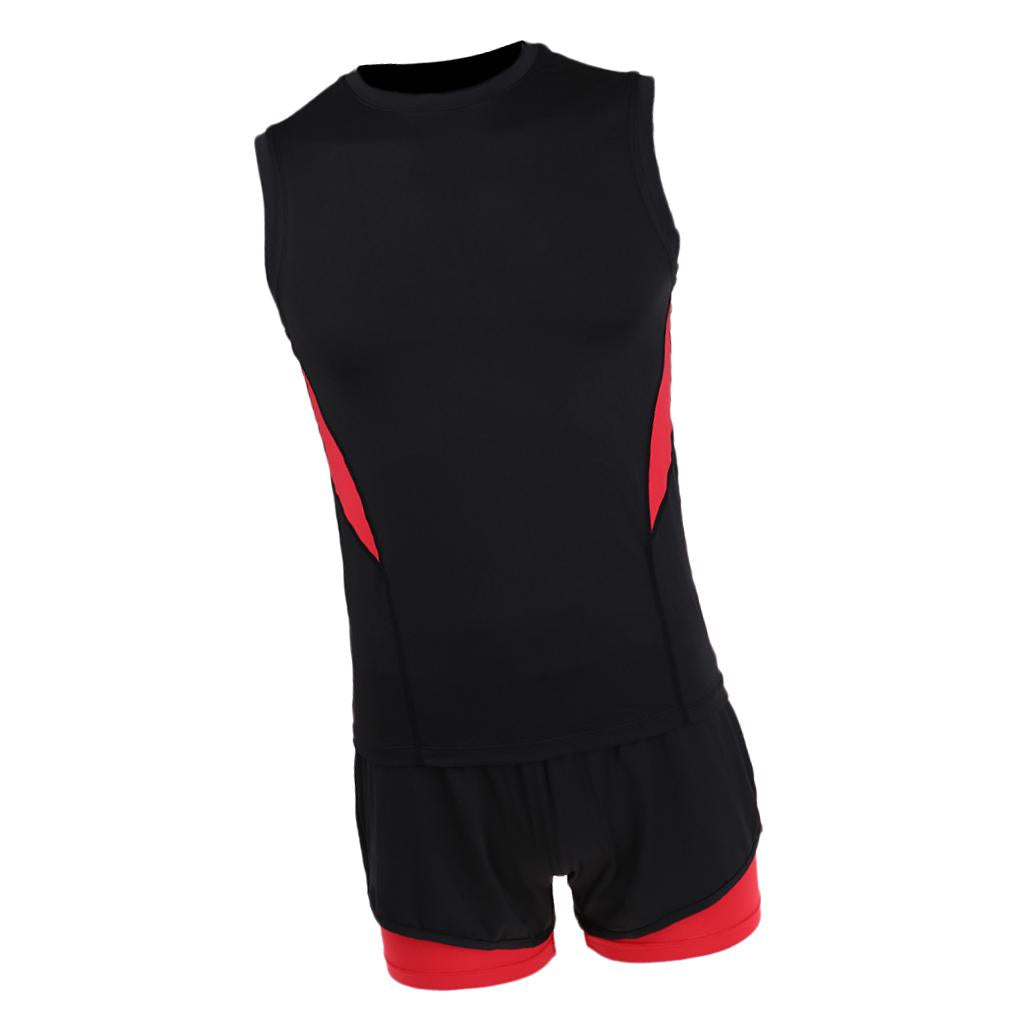 Men's Cycling Jersey Sleeveless Vest with Short Pants 4XL Red Black