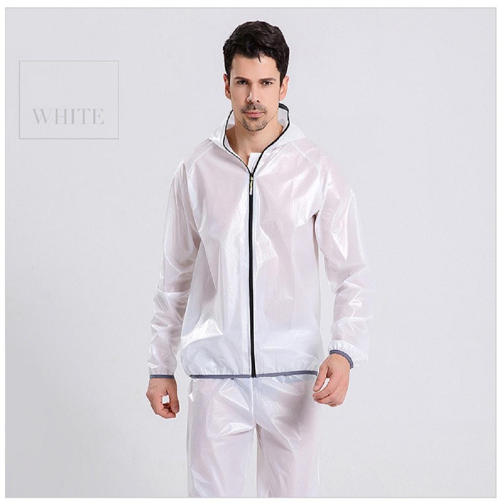 Unisex Cycling Rain Jacket Windproof Rain Coat Outdoor Rain Suit White XL