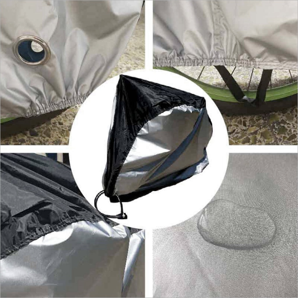210T polyester with PU silver coating, protecting bicycle against rain, snow, dust, dirt and UV rays, etc