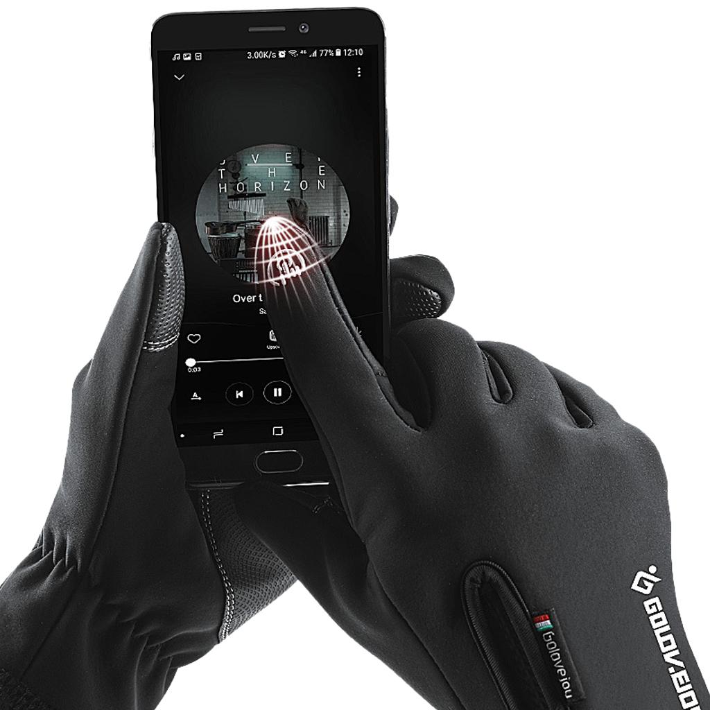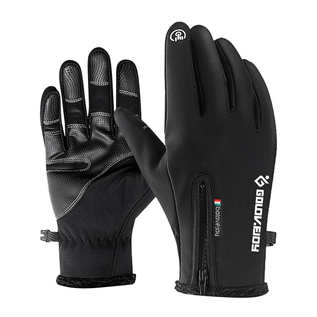 Full finger touch screen gloves with rainproof zipper, water resistant, windproof, thermal, anti-slip fingertip and palm