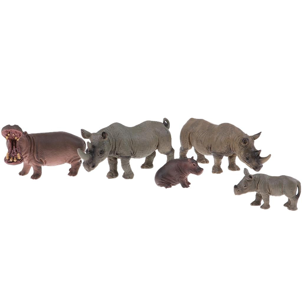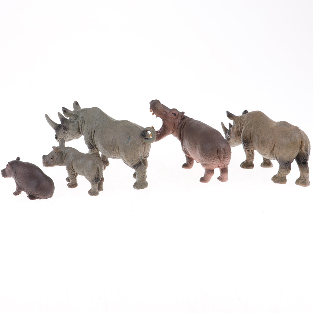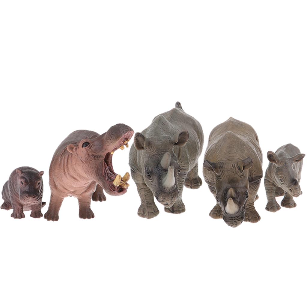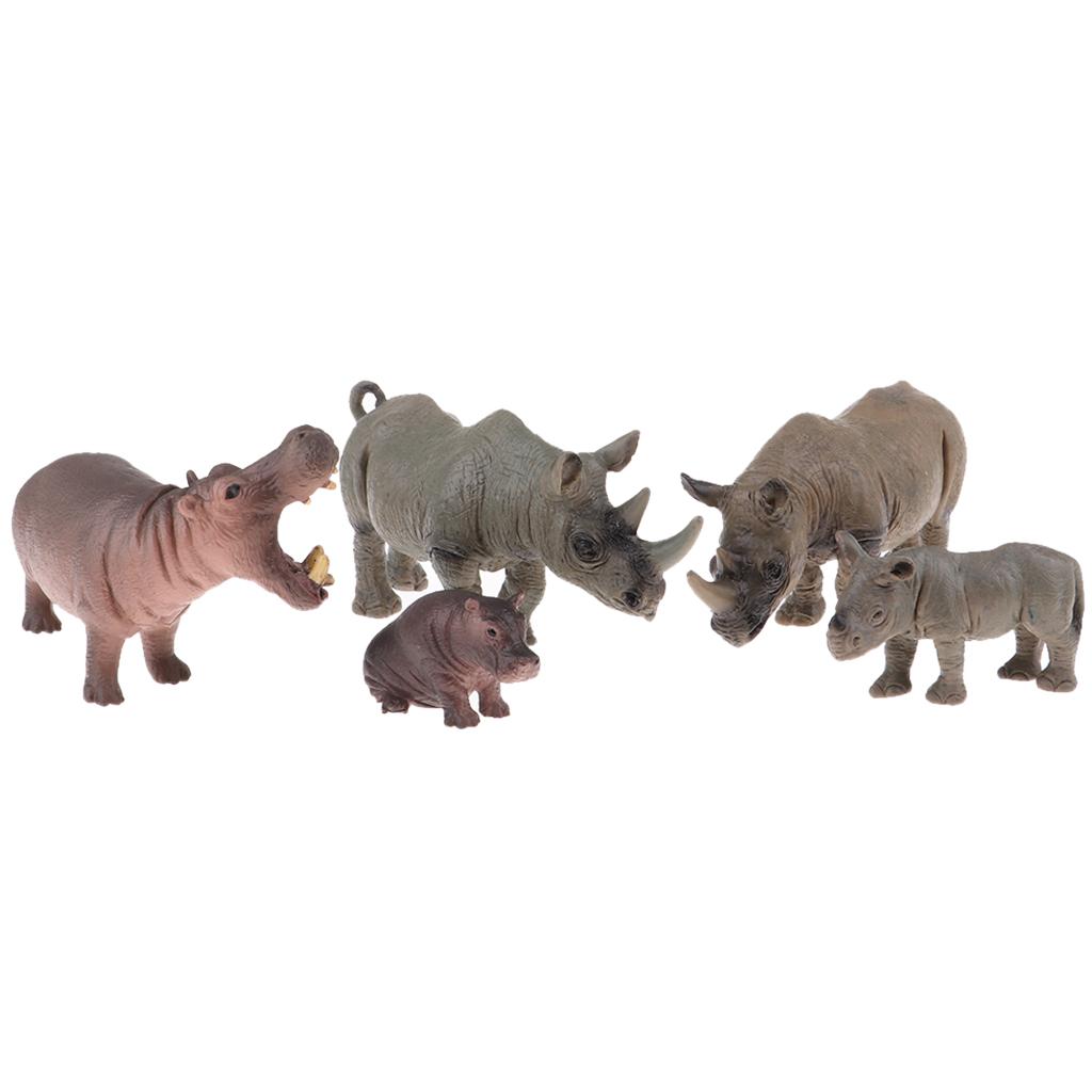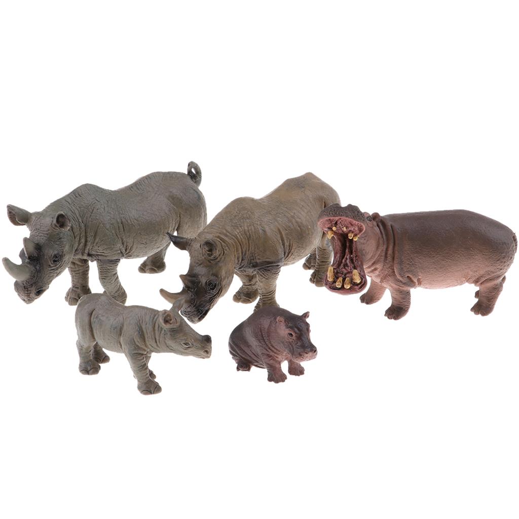 5 Pieces Rhinoceros and Hippo Model Playset Toys