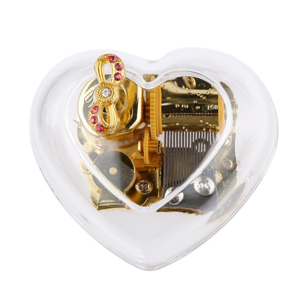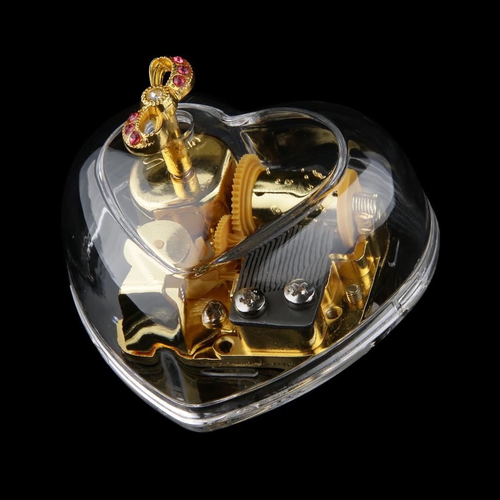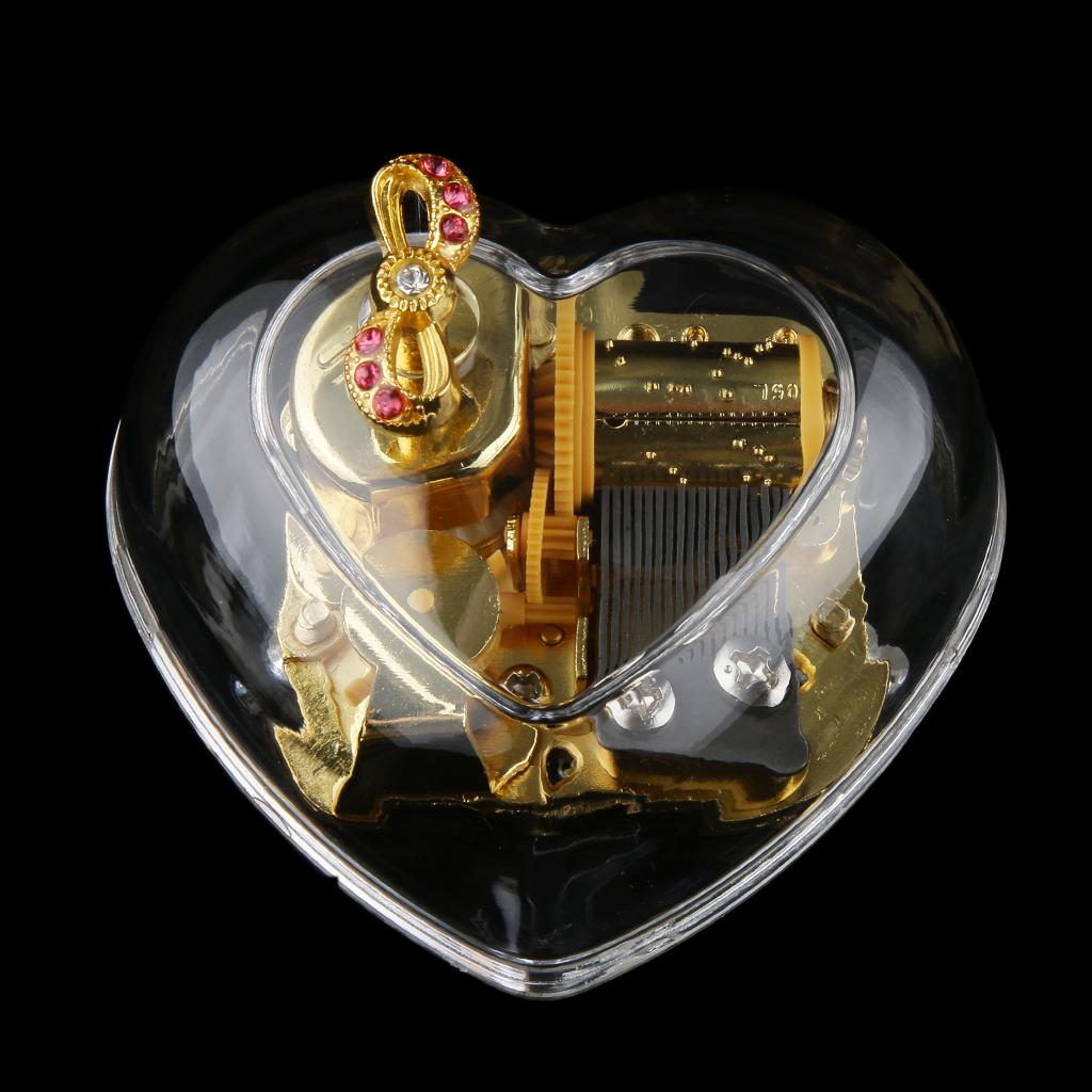 Acrylic Heart Bowknot Clockwork Music Box Melody Box Happy Birthday To You