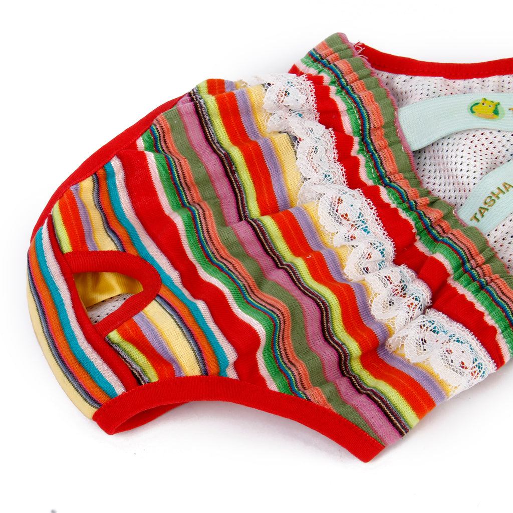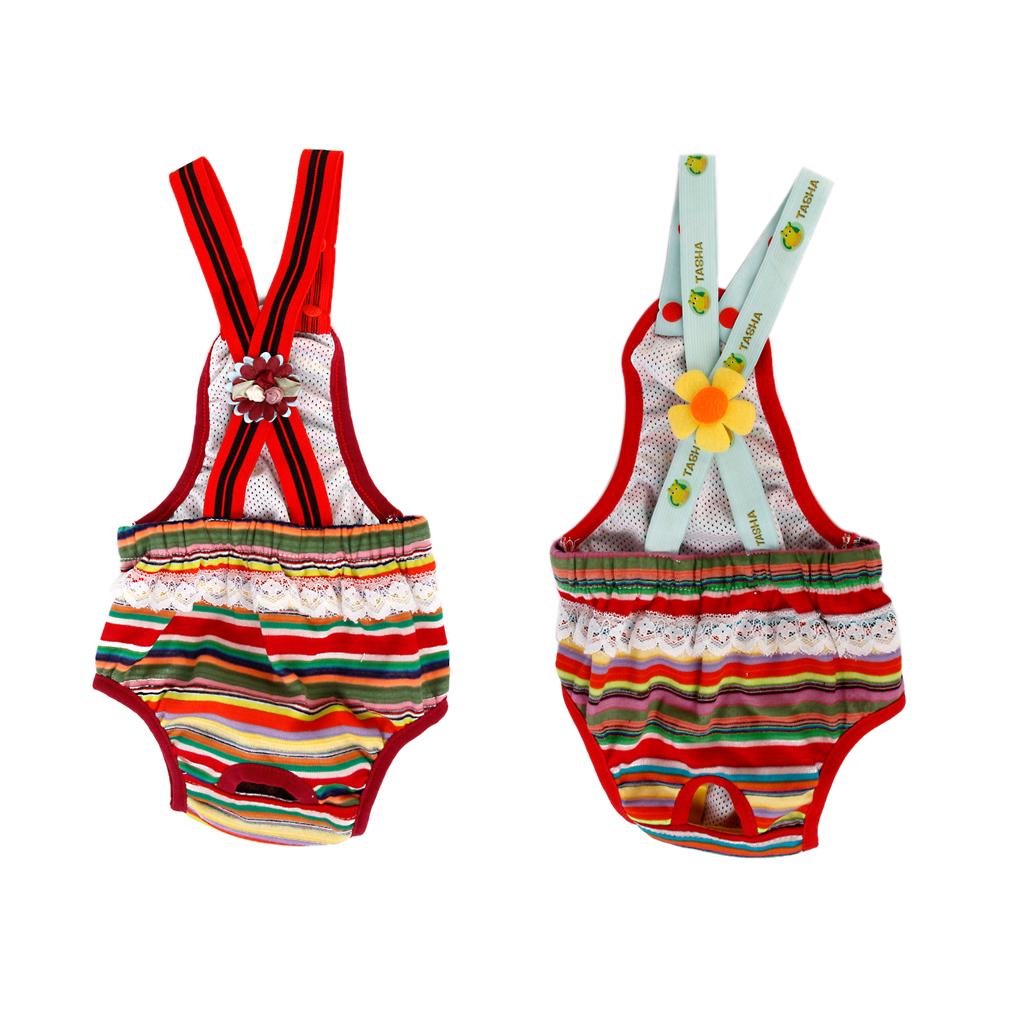 2Pcs Female Pet Dog Colorful Striped Suspender Braces Sanitary Panty Diaper