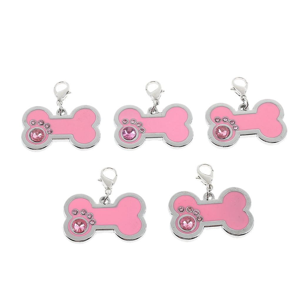 5x Pet Dog Cat ID Tag Bone Shaped Jewelry Tag Metal Necklace Pendant Pink